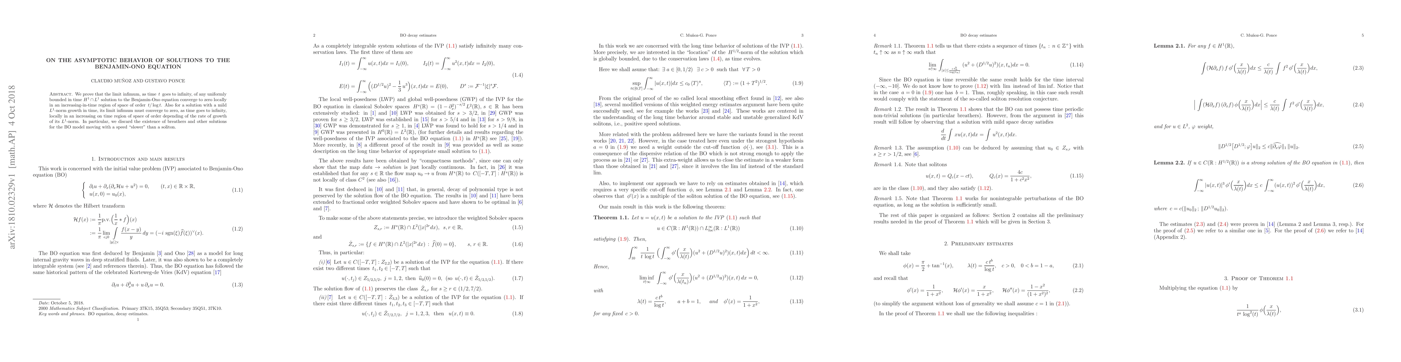The research proves that solutions to the Benjamin-Ono equation, under certain conditions, approach zero locally in space as time goes to infinity, refuting the existence of slow-moving solutions like breathers. This is determined by the growth rate of the $L^1$-norm.