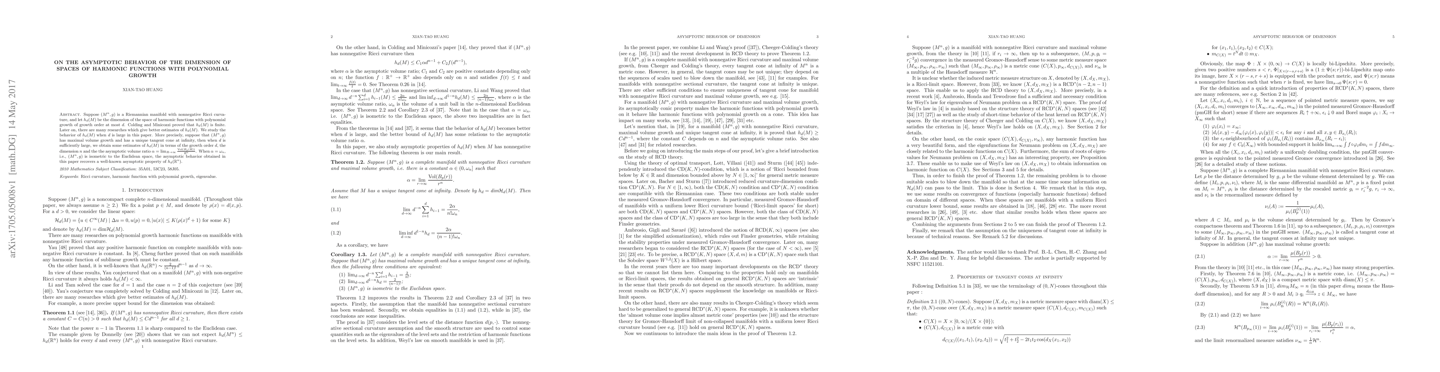 Researchers study the behavior of harmonic functions with polynomial growth on Riemannian manifolds with specific properties, providing estimates for their dimension in terms of growth order and volume ratio.