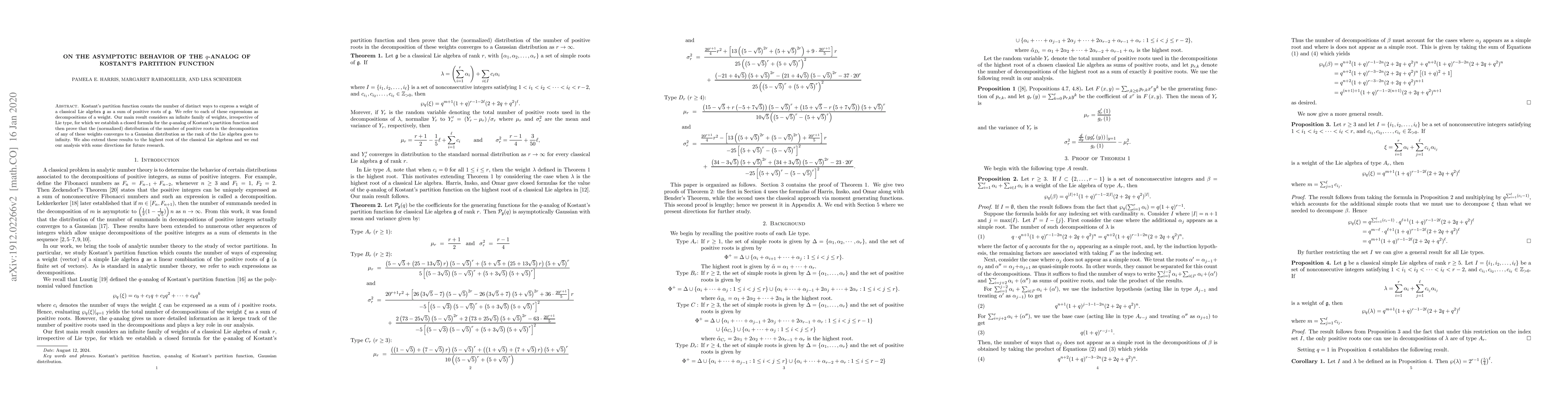 Kostant's partition function counts the number of distinct ways to express a weight of a classical Lie algebra $\mathfrak{g}$ as a sum of positive roots of $\mathfrak{g}$. We refer to each of these expressions as decompositions of a weight. Our main result considers an infinite family of weights, irrespective of Lie type, for which we establish a closed formula for the $q$-analog of Kostant's partition function and then prove that the (normalized) distribution of the number of positive roots in the decomposition of any of these weights converges to a Gaussian distribution as the rank of the Lie algebra goes to infinity. We also extend these results to the highest root of the classical Lie algebras and we end our analysis with some directions for future research.