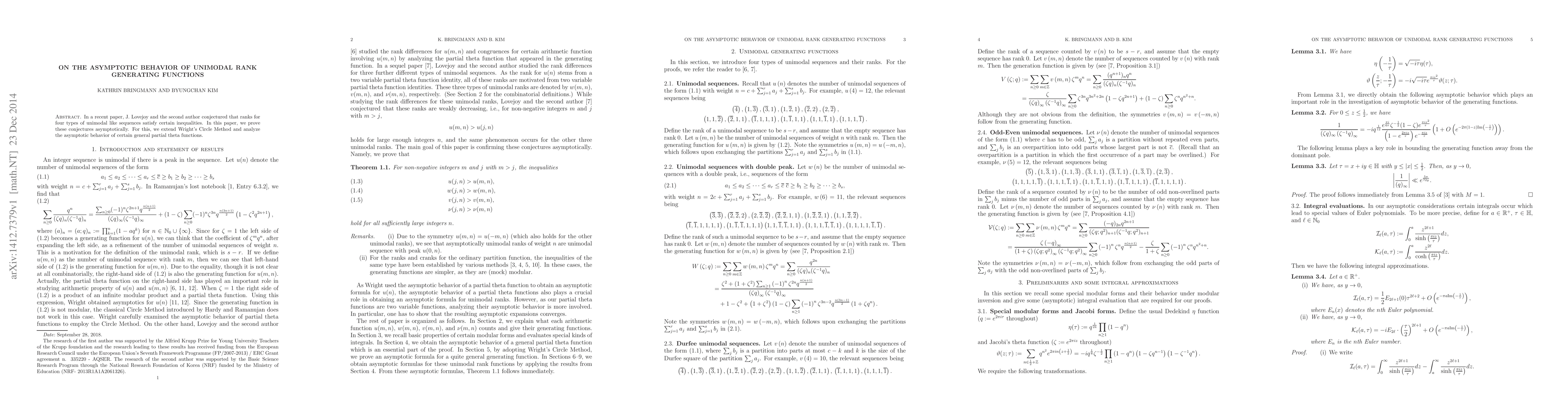 In a recent paper, J. Lovejoy and the second author conjectured that ranks for four types of unimodal like sequences satisfy certain inequalities. In this paper, we prove these conjectures asymptotically. For this, we extend Wright's Circle Method and analyze the asymptotic behavior of certain general partial theta functions.