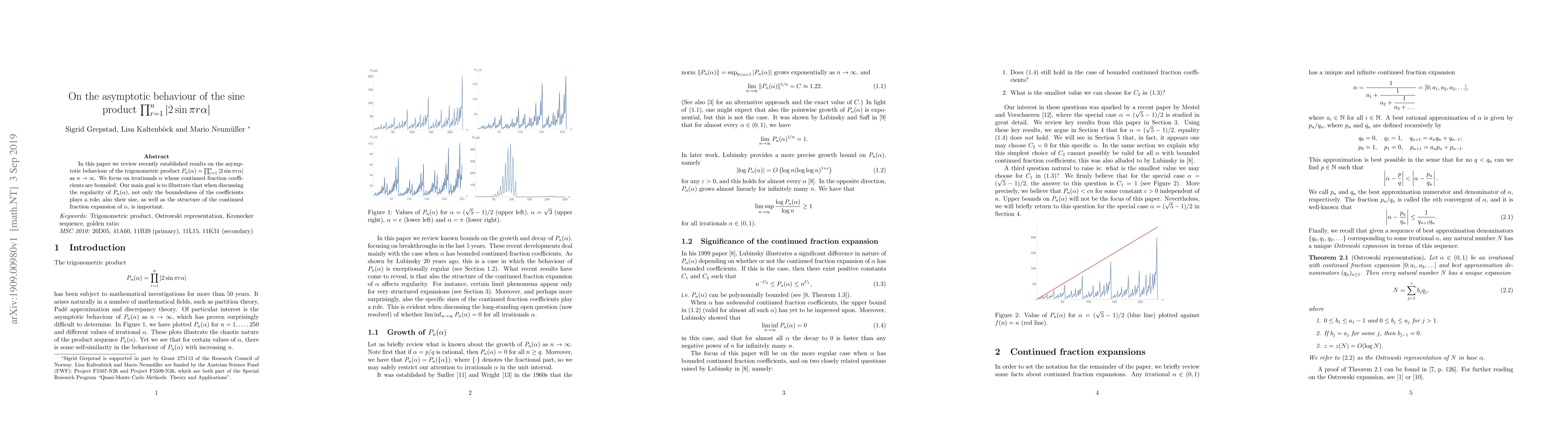 In this paper we review recently established results on the asymptotic behaviour of the trigonometric product $P_n(\alpha) = \prod_{r=1}^n |2\sin \pi r \alpha|$ as $n\to \infty$. We focus on irrationals $\alpha$ whose continued fraction coefficients are bounded. Our main goal is to illustrate that when discussing the regularity of $P_n(\alpha)$, not only the boundedness of the coefficients plays a role; also their size, as well as the structure of the continued fraction expansion of $\alpha$, is important.