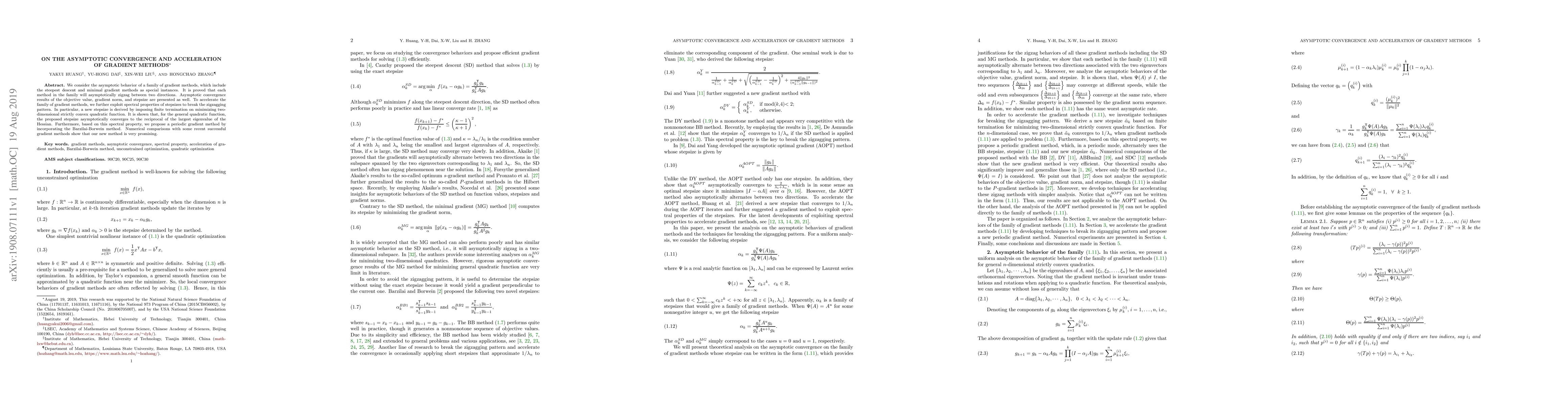 We consider the asymptotic behavior of a family of gradient methods, which include the steepest descent and minimal gradient methods as special instances. It is proved that each method in the family will asymptotically zigzag between two directions. Asymptotic convergence results of the objective value, gradient norm, and stepsize are presented as well. To accelerate the family of gradient methods, we further exploit spectral properties of stepsizes to break the zigzagging pattern. In particular, a new stepsize is derived by imposing finite termination on minimizing two-dimensional strictly convex quadratic function. It is shown that, for the general quadratic function, the proposed stepsize asymptotically converges to the reciprocal of the largest eigenvalue of the Hessian. Furthermore, based on this spectral property, we propose a periodic gradient method by incorporating the Barzilai-Borwein method. Numerical comparisons with some recent successful gradient methods show that our new method is very promising.