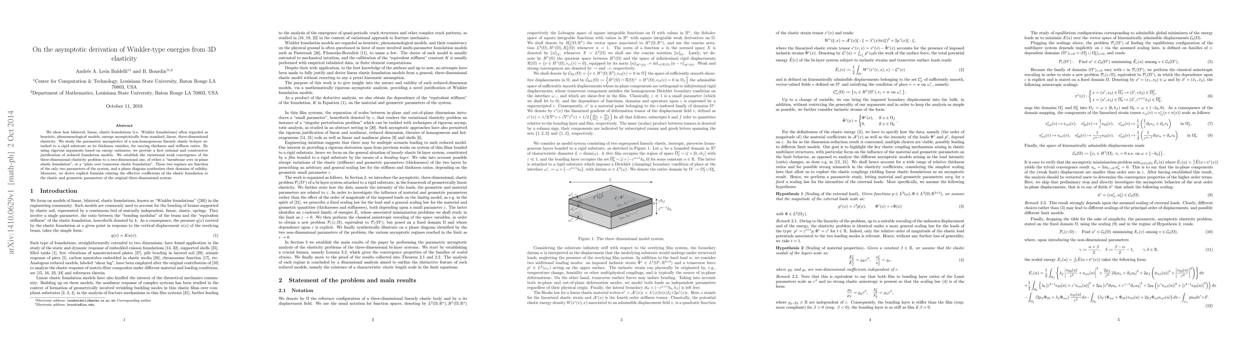Researchers derive a theoretical framework for how 3D elasticity models reduce to simpler Winkler-type energy models as the thickness of a bi-layer vanishes, providing a rational justification for these foundations.