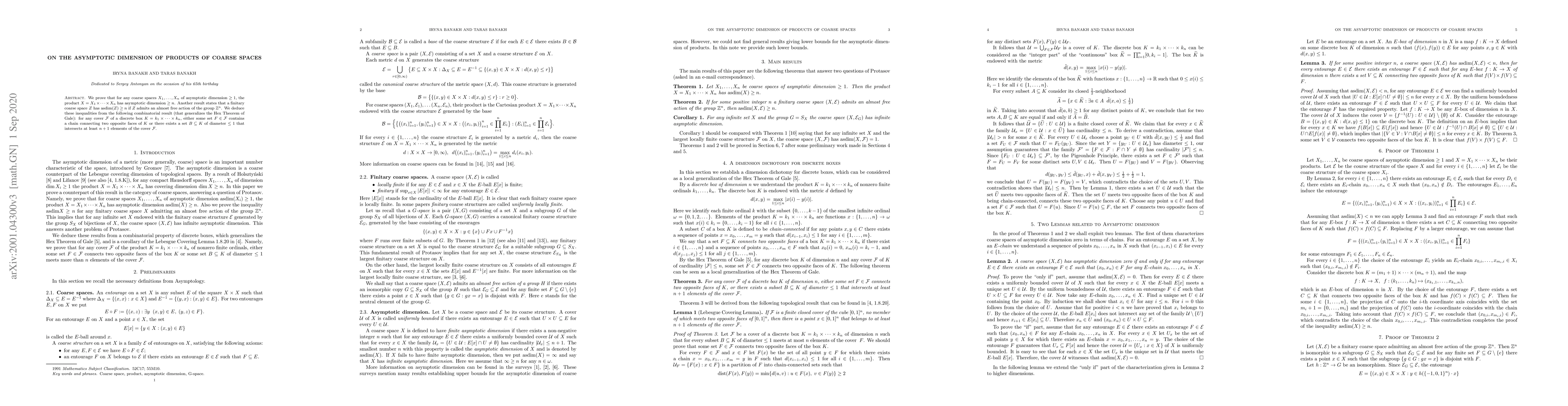 A recent research paper proves that for coarse spaces with high asymptotic dimension, their product space also has a high asymptotic dimension, and provides combinatorial conditions for this to occur.