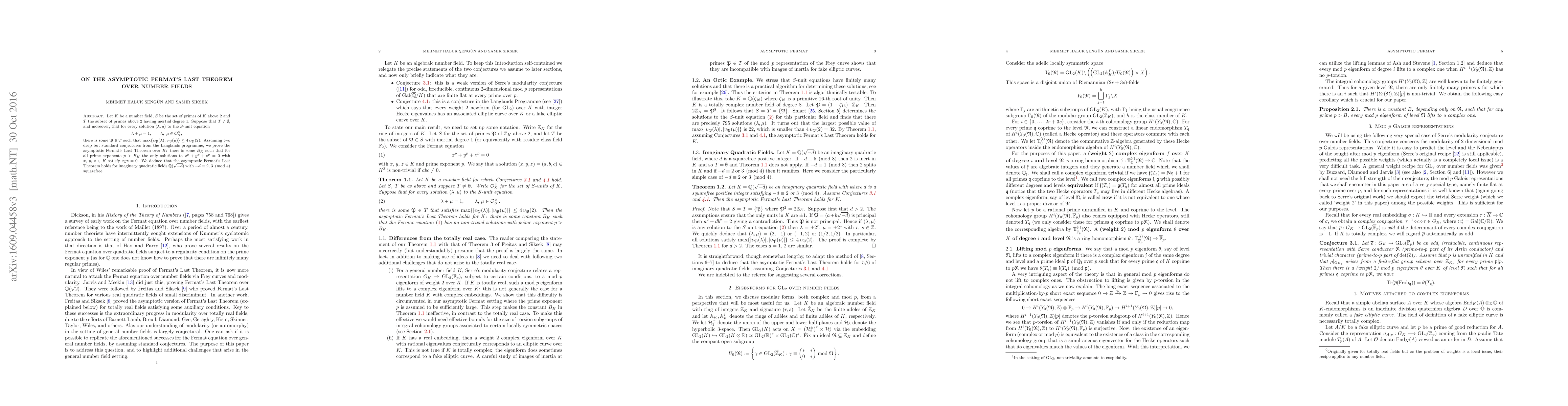 This paper proves the asymptotic version of Fermat's Last Theorem for imaginary quadratic fields under standard conjectures from the Langlands Programme. It also provides a criterion for general number fields based on S-unit equations to imply the theorem, again assuming standard conjectures.