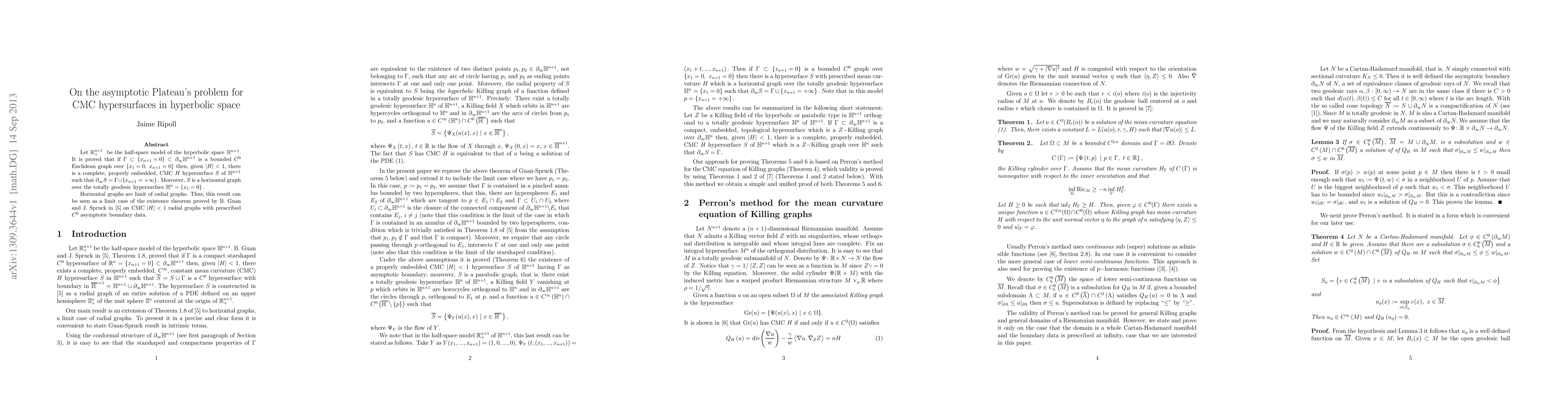 This research extends a previous result on the asymptotic Plateau's problem to horizontal CMC graphs in hyperbolic space, shedding light on the existence of minimal hypersurfaces with constant mean curvature.