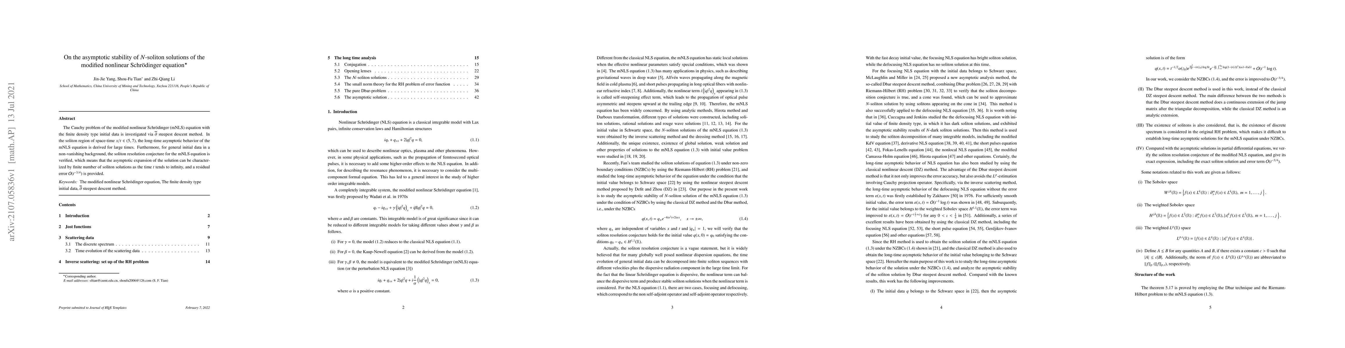 This paper investigates the asymptotic stability of $N$-soliton solutions for the modified nonlinear Schrödinger equation using the $\overline{\partial}$ steepest descent method. It verifies the soliton resolution conjecture, showing that the solution's asymptotic behavior is characterized by a finite number of solitons with a residual error of $\mathcal {O}(t^{-3/4})$.