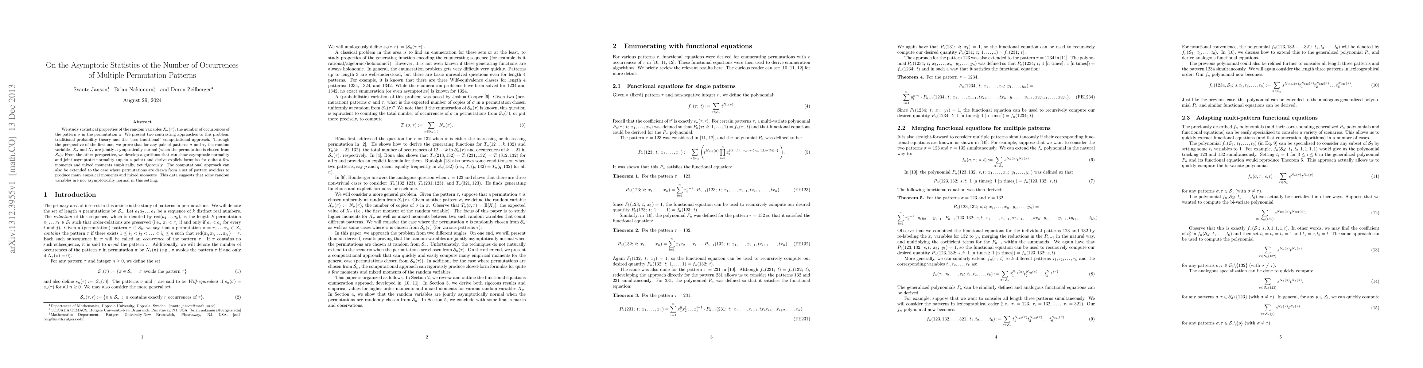 This paper explores the asymptotic statistics of permutation pattern occurrences using both traditional probability theory and computational methods. It proves joint asymptotic normality for pattern occurrences in large permutations and develops algorithms to empirically derive moments and mixed moments, suggesting deviations from normality in restricted pattern sets.