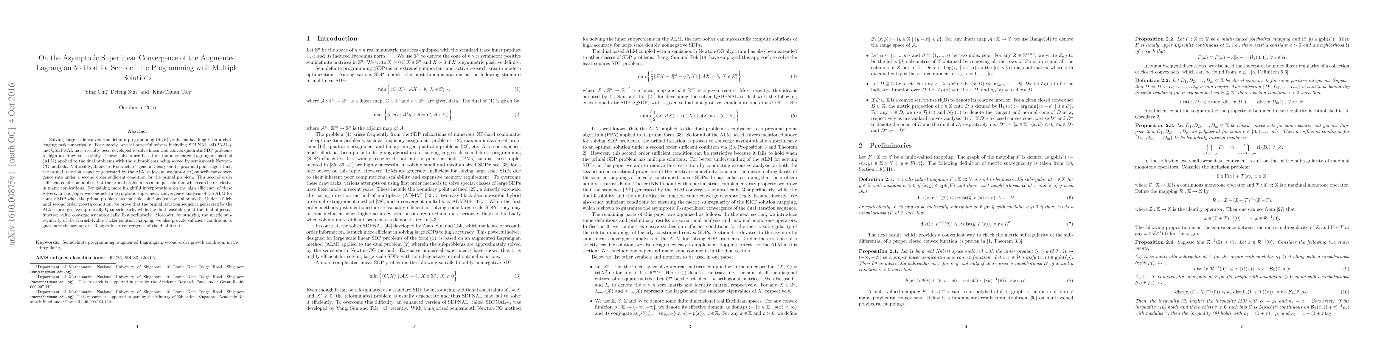 This paper investigates the asymptotic superlinear convergence of the augmented Lagrangian method (ALM) for solving large-scale convex semidefinite programming (SDP) problems with multiple solutions. It proves that under a mild second-order growth condition, the ALM achieves Q-superlinear convergence for primal iterations and R-superlinear convergence for dual feasibility and objective values.