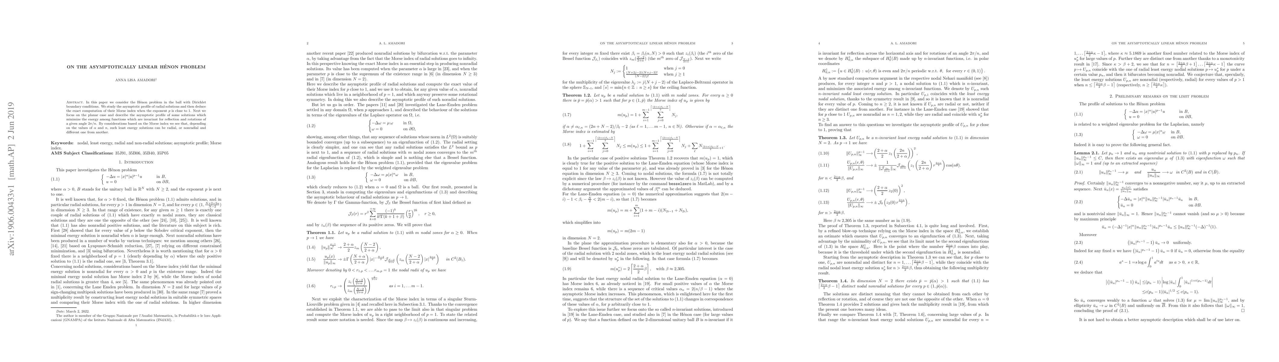 Researchers studied the Hénon problem with Dirichlet boundary conditions, finding that solutions minimizing energy can be radial or non-radial, depending on parameters $ heta$ and $n$, and their Morse index is determined by these parameters.