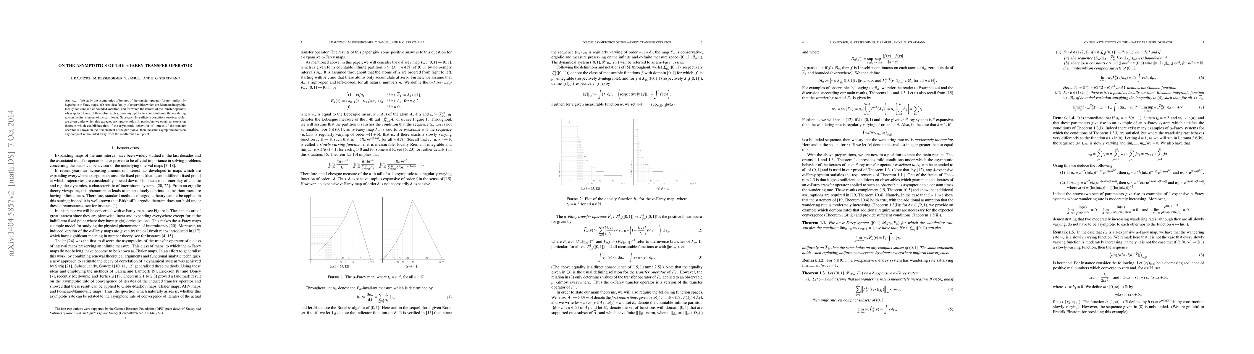 We study the asymptotics of iterates of the transfer operator for non-uniformly hyperbolic $\alpha$-Farey maps. We provide a family of observables which are Riemann integrable, locally constant and of bounded variation, and for which the iterates of the transfer operator, when applied to one of these observables, is not asymptotic to a constant times the wandering rate on the first element of the partition $\alpha$. Subsequently, sufficient conditions on observables are given under which this expected asymptotic holds. In particular, we obtain an extension theorem which establishes that, if the asymptotic behaviour of iterates of the transfer operator is known on the first element of the partition $\alpha$, then the same asymptotic holds on any compact set bounded away from the indifferent fixed point.