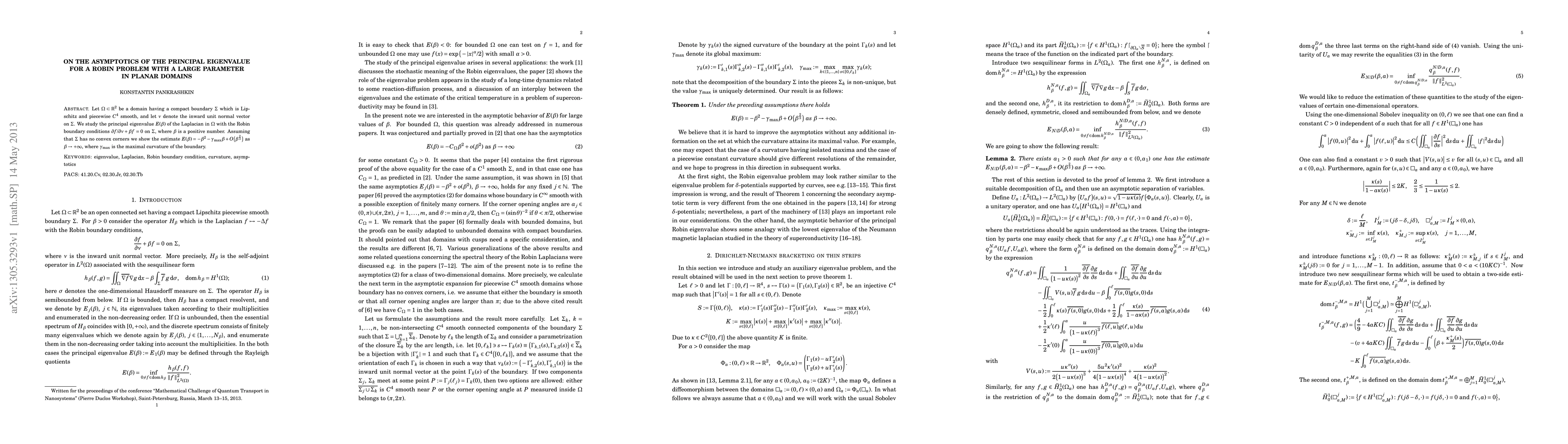 This paper investigates the principal eigenvalue $E(\beta)$ for the Laplacian in a planar domain $\Omega$ under Robin boundary conditions, showing an asymptotic expansion $E(\beta)=-\beta^2 - \gamma_\max\beta + O(\beta^{2/3})$ as $\beta$ approaches infinity, where $\gamma_\max$ is the maximal curvature of the boundary. The analysis assumes a Lipschitz and piecewise $C^4$ smooth boundary without convex corners.
