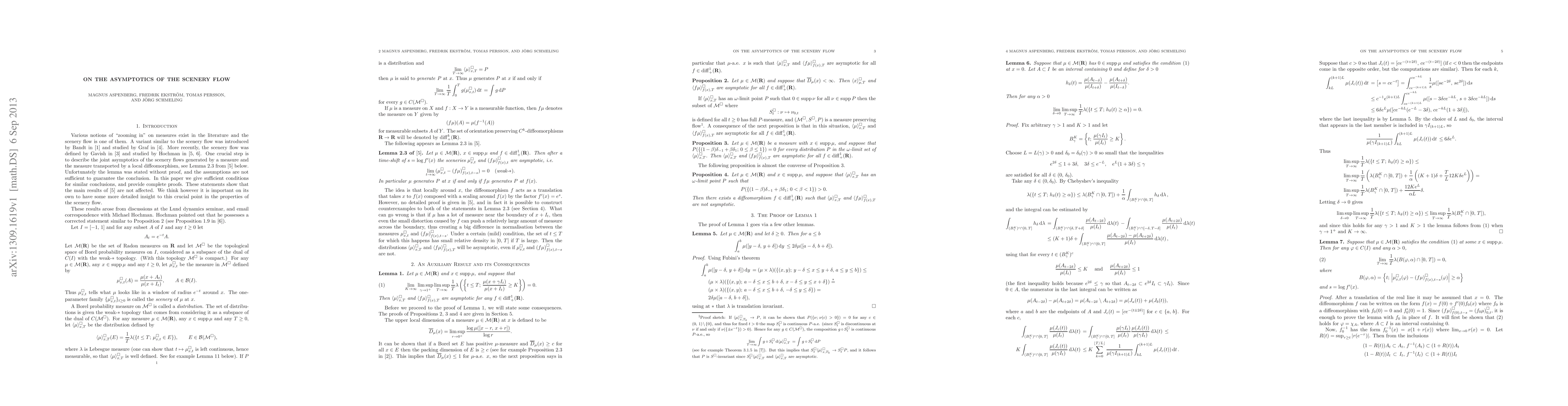 Various notions of "zooming in" on measures exist in the literature and the scenery flow is one of them. It is of interest to describe the joint asymptotics of the scenery flows generated by a measure and the measure transported by a local diffeomorphism. We give both sufficient and necessary conditions for the scenery distributions to be asymptotic and provide some examples.