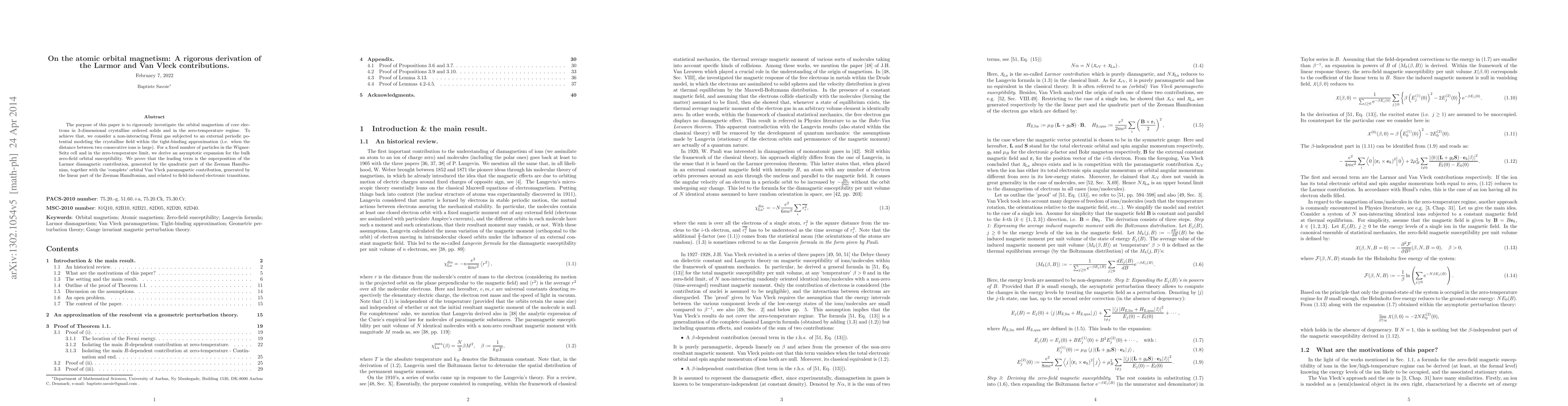 This paper rigorously derives the Larmor and Van Vleck contributions to the orbital magnetism of core electrons in crystalline solids at zero temperature. It uses a non-interacting Fermi gas model under a tight-binding approximation to derive the bulk zero-field orbital susceptibility, showing that the leading term is a superposition of the Larmor diamagnetic and Van Vleck paramagnetic contributions.