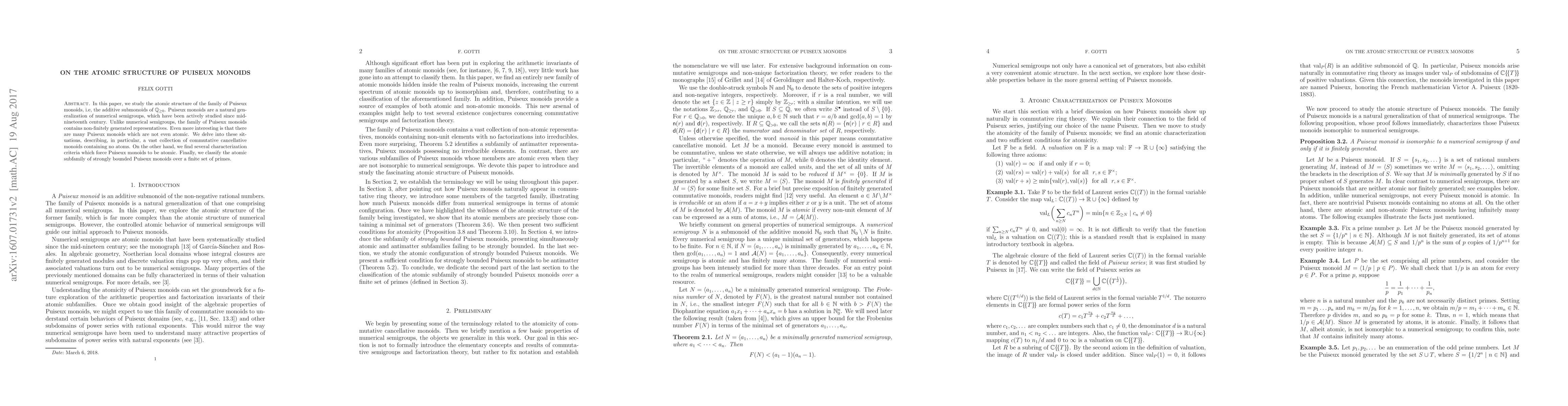 This paper explores the atomic structure of Puiseux monoids, a generalization of numerical semigroups, revealing that many are non-finitely generated and some lack atoms altogether. It also identifies conditions that ensure atomicity and classifies the atomic subfamily of strongly bounded Puiseux monoids over a finite set of primes.