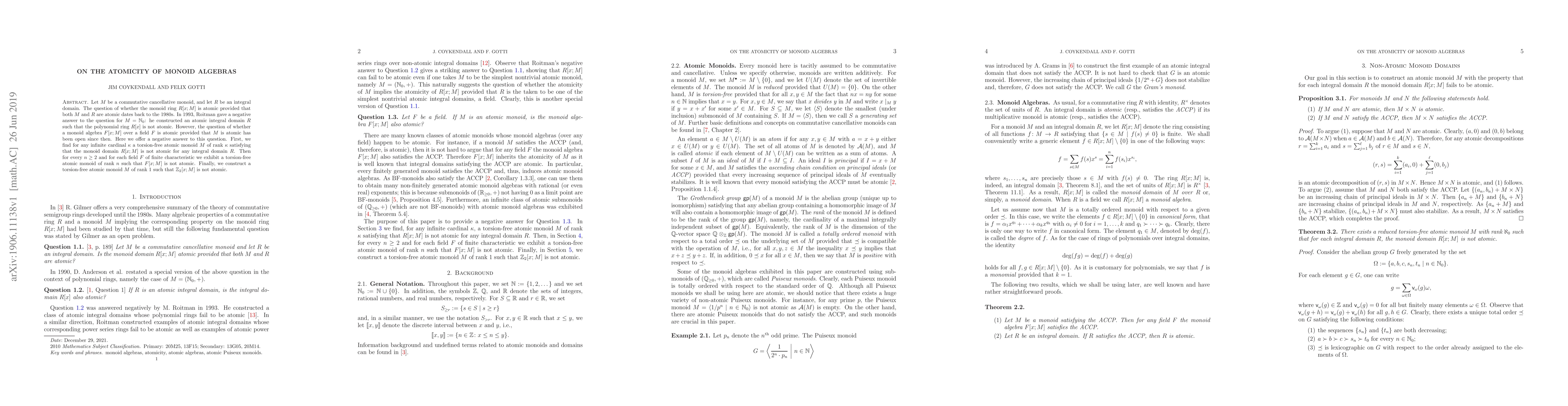 Let $M$ be a commutative cancellative monoid, and let $R$ be an integral domain. The question of whether the monoid ring $R[x;M]$ is atomic provided that both $M$ and $R$ are atomic dates back to the 1980s. In 1993, Roitman gave a negative answer to the question for $M = \mathbb{N}_0$: he constructed an atomic integral domain $R$ such that the polynomial ring $R[x]$ is not atomic. However, the question of whether a monoid algebra $F[x;M]$ over a field $F$ is atomic provided that $M$ is atomic has been open since then. Here we offer a negative answer to this question. First, we find for any infinite cardinal $\kappa$ a torsion-free atomic monoid $M$ of rank $\kappa$ satisfying that the monoid domain $R[x;M]$ is not atomic for any integral domain $R$. Then for every $n \ge 2$ and for each field $F$ of finite characteristic we exhibit a torsion-free atomic monoid of rank $n$ such that $F[x;M]$ is not atomic. Finally, we construct a torsion-free atomic monoid $M$ of rank $1$ such that $\mathbb{Z}_2[x;M]$ is not atomic.