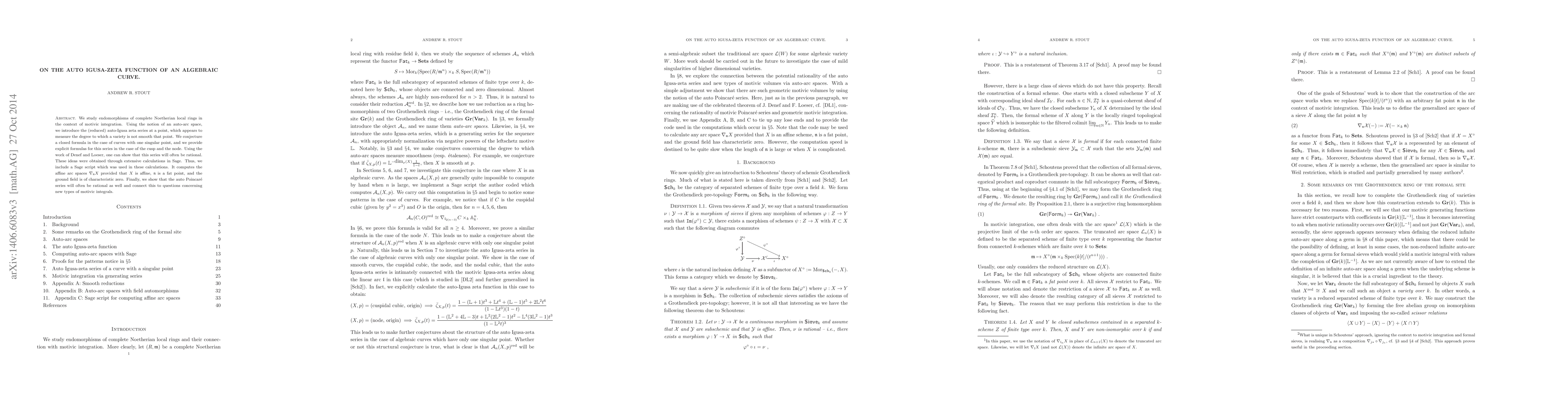 This paper explores the auto-Igusa zeta function for algebraic curves, introducing a new series that measures non-smoothness at a point through the auto-arc space. The authors conjecture a closed formula for curves with one singular point and provide explicit formulas for cusps and nodes, proving rationality of these series using motivic integration and computational methods in Sage.