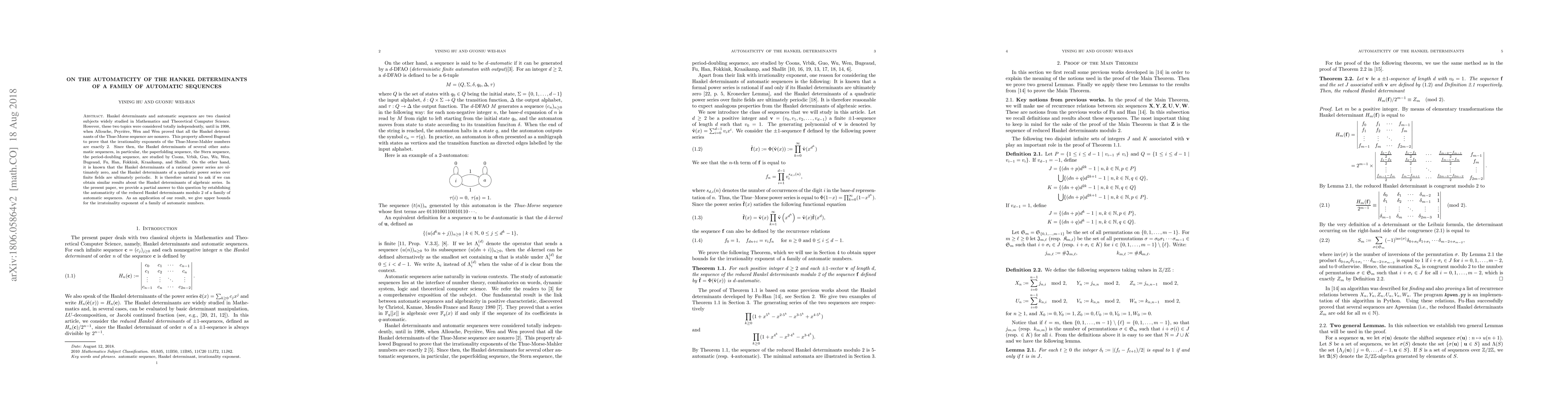 Hankel determinants and automatic sequences are two classical subjects widely studied in Mathematics and Theoretical Computer Science. However, these two topics were considered totally independently, until in 1998, when Allouche, Peyri\`ere, Wen and Wen proved that all the Hankel determinants of the Thue-Morse sequence are nonzero. This property allowed Bugeaud to prove that the irrationality exponents of the Thue-Morse-Mahler numbers are exactly 2. Since then, the Hankel determinants of several other automatic sequences, in particular, the paperfolding sequence, the Stern sequence, the period-doubling sequence, are studied by Coons, Vrbik, Guo, Wu, Wen, Bugeaud, Fu, Han, Fokkink, Kraaikamp, and Shallit. On the other hand, it is known that the Hankel determinants of a rational power series are ultimately zero, and the Hankel determinants of a quadratic power series over finite fields are ultimately periodic. It is therefore natural to ask if we can obtain similar results about the Hankel determinants of algebraic series. In the present paper, we provide a partial answer to this question by establishing the automaticity of the reduced Hankel determinants modulo $2$ of $\pm 1$-automatic sequences with kernel of cardinality at most $2$.