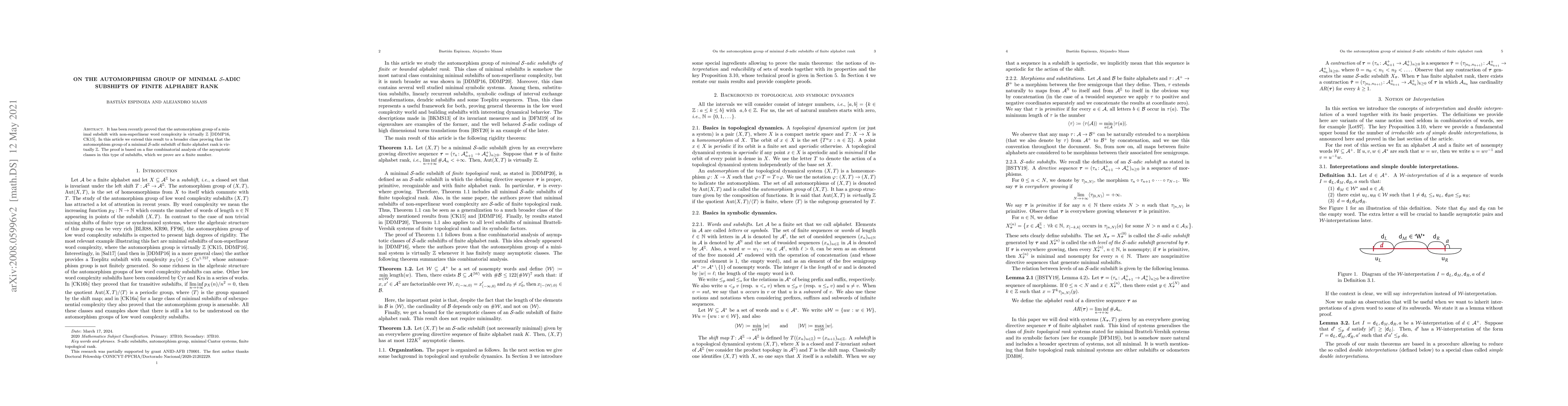 This paper extends the result that the automorphism group of a minimal subshift with non-superlinear word complexity is virtually $\mathbb{Z}$ to minimal S-adic subshifts of finite alphabet rank. The proof relies on a detailed combinatorial analysis of the asymptotic classes within these subshifts.