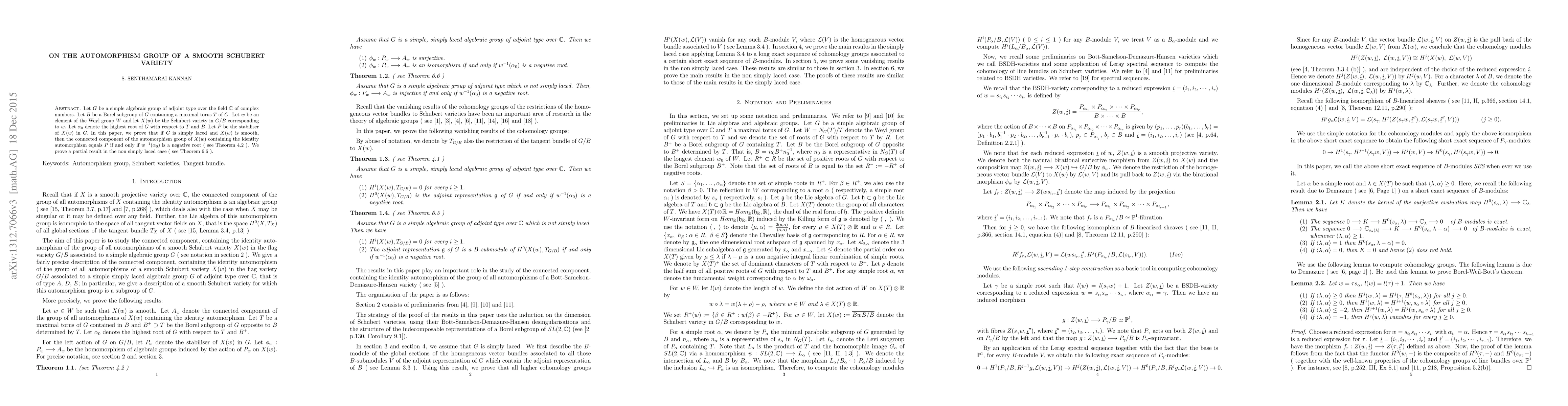 Let $G$ be a simple algebraic group of adjoint type over the field $\mathbb{C}$ of complex numbers. Let $B$ be a Borel subgroup of $G$ containing a maximal torus $T$ of $G$. Let $w$ be an element of the Weyl group $W$ and let $X(w)$ be the Schubert variety in $G/B$ corresponding to $w$. Let $\alpha_{0}$ denote the highest root of $G$ with respect to $T$ and $B.$ Let $P$ be the stabiliser of $X(w)$ in $G.$ In this paper, we prove that if $G$ is simply laced and $X(w)$ is smooth, then the connected component of the automorphism group of $X(w)$ containing the identity automorphism equals $P$ if and only if $w^{-1}(\alpha_{0})$ is a negative root ( see Theorem 4.2 ). We prove a partial result in the non simply laced case ( see Theorem 6.6 ).