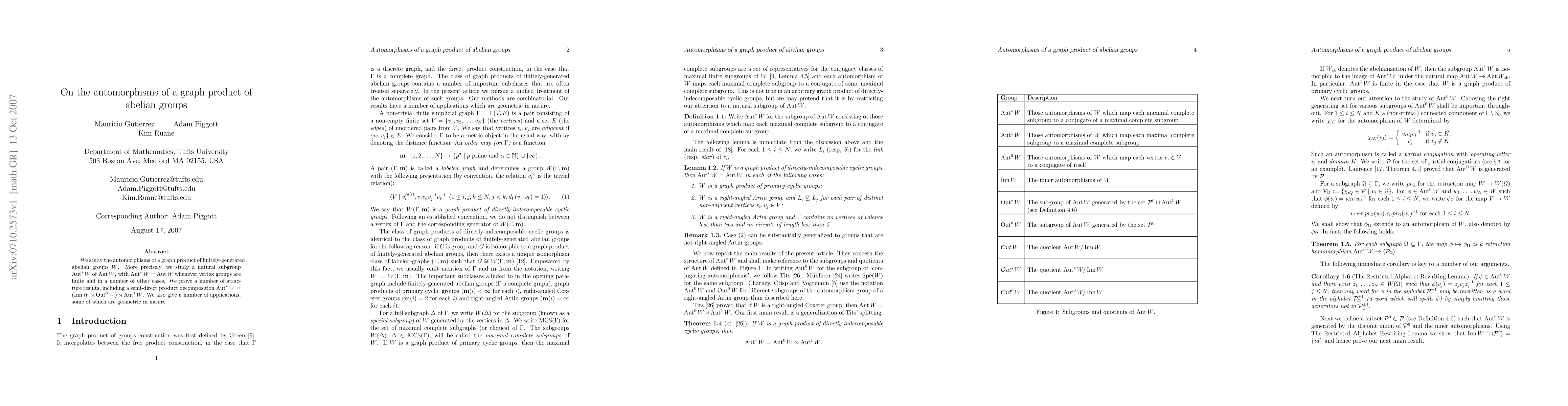 Researchers studied the automorphisms of a graph product of finitely-generated abelian groups, finding a semi-direct product decomposition that involves the inner automorphism group, with applications in geometry.
