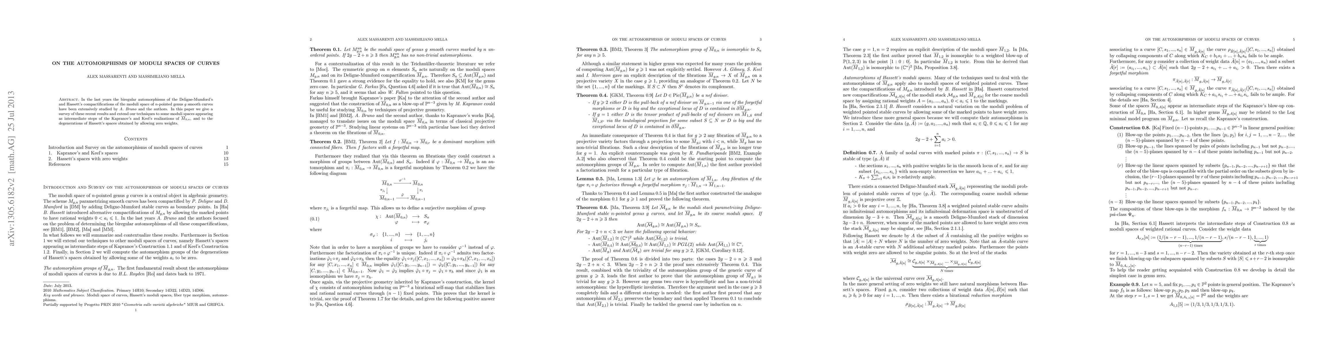 In the last years the biregular automorphisms of the Deligne-Mumford's and Hassett's compactifications of the moduli space of n-pointed genus g smooth curves have been extensively studied by A. Bruno and the authors. In this paper we give a survey of these recent results and extend our techniques to some moduli spaces appearing as intermediate steps of the Kapranov's and Keel's realizations of $\bar{M}_{0,n}$, and to the degenerations of Hassett's spaces obtained by allowing zero weights.