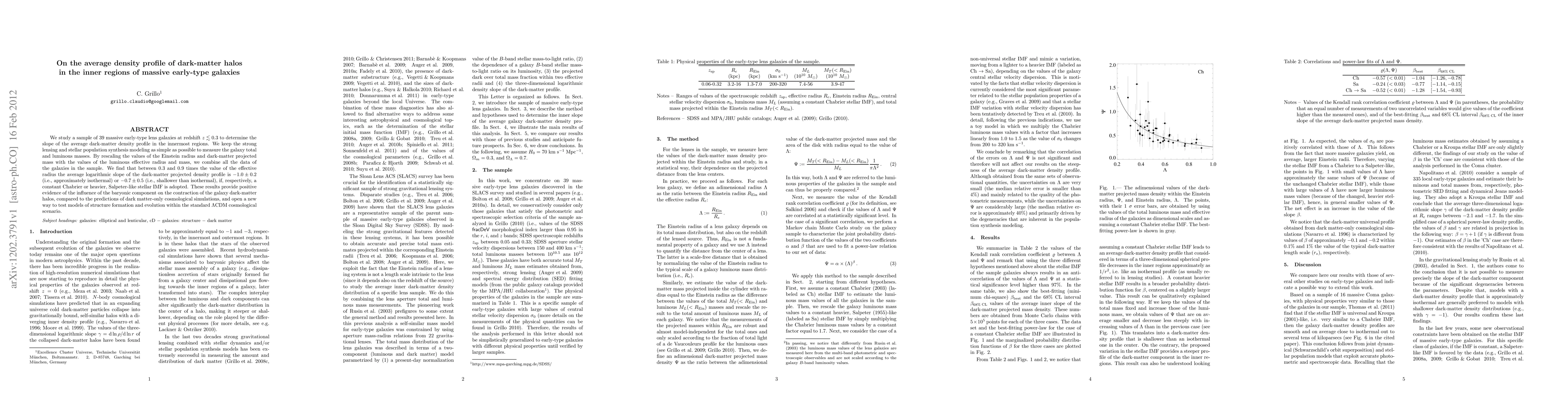 This study analyzes 39 massive early-type galaxies to determine the average dark-matter density profile in their inner regions, finding an approximately isothermal slope. The results suggest a significant influence of baryonic components in shaping the dark-matter halos, challenging predictions from dark matter-only simulations.