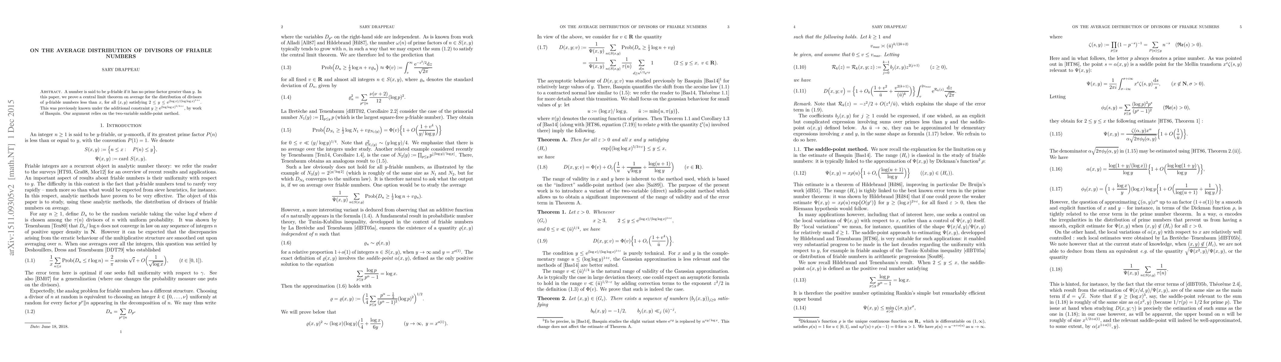 Researchers prove a central limit theorem for divisors of numbers with no prime factors greater than y, extending an existing result to a wider range of values (x, y). The argument relies on the two-variable saddle-point method and is applicable to a broader set of inputs.