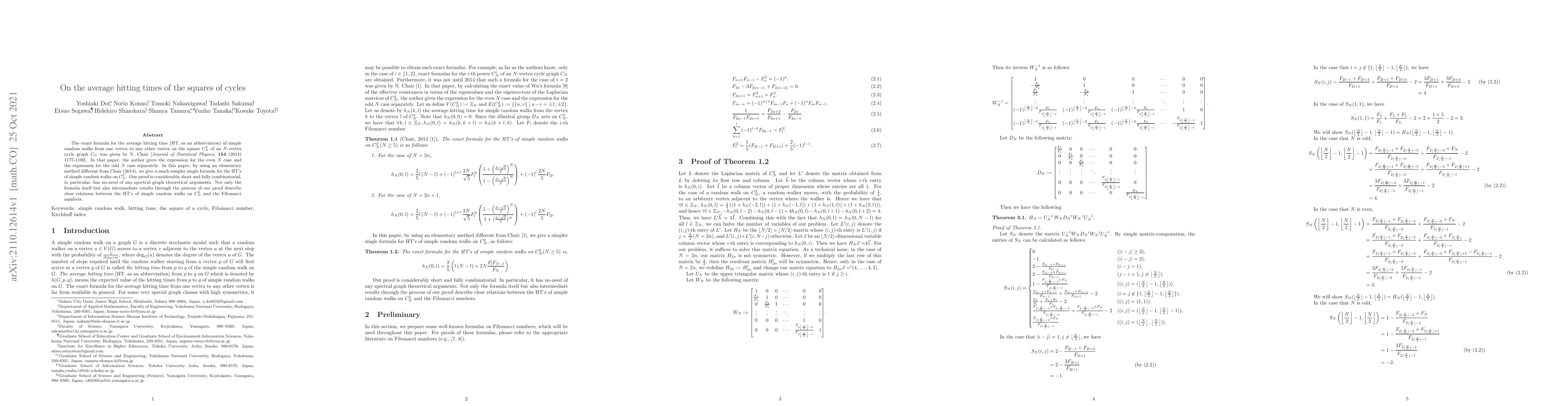 Researchers simplify a formula for calculating average hitting times of random walks on square graphs, providing a clearer connection between these times and Fibonacci numbers.