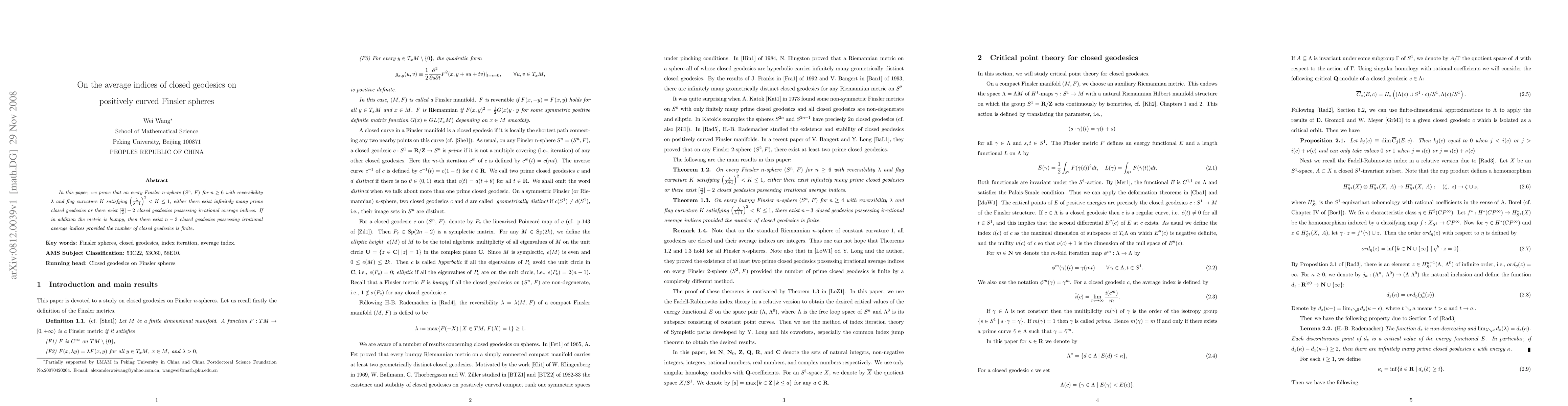 Summary: This paper proves that on positively curved, reversible Finsler $n$-spheres ($n\ge6$), there are either infinitely many prime closed geodesics or a significant subset with irrational average indices, especially when the metric is "bumpy". The latter case guarantees $n-3$ closed geodesics with irrational indices when the total number is finite.