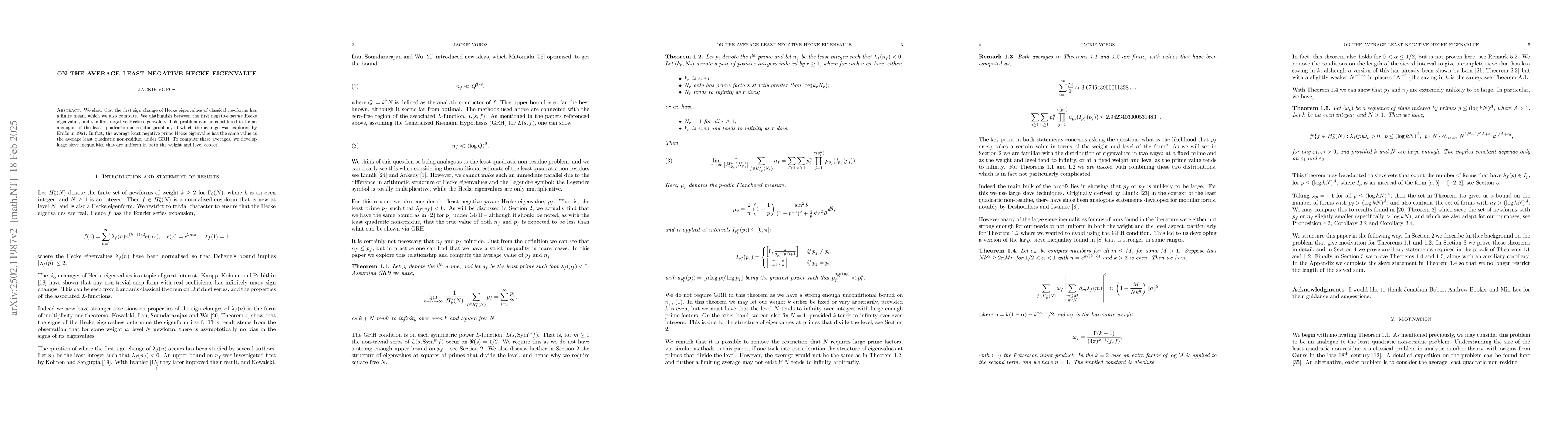 This paper presents a novel connection between the distribution of least negative Hecke eigenvalues and the least quadratic non-residue problem, equating their averages under GRH.