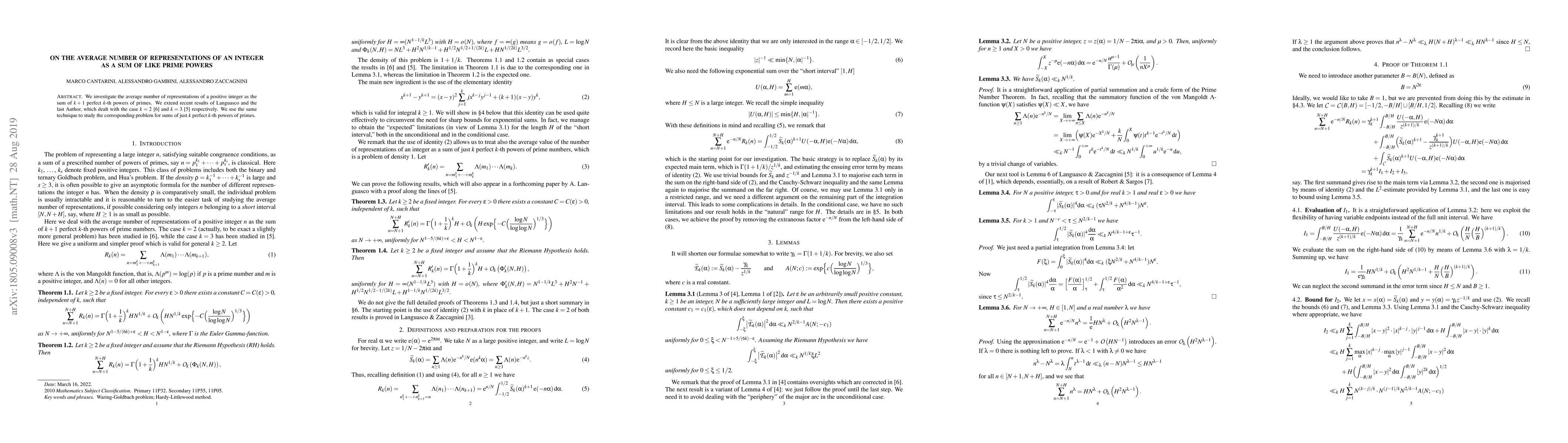 This paper explores the average number of ways a positive integer can be represented as the sum of $k + 1$ or $k$ perfect $k$-th powers of primes, extending previous results for $k = 2$ and $k = 3$. The study employs similar techniques to those previously used.