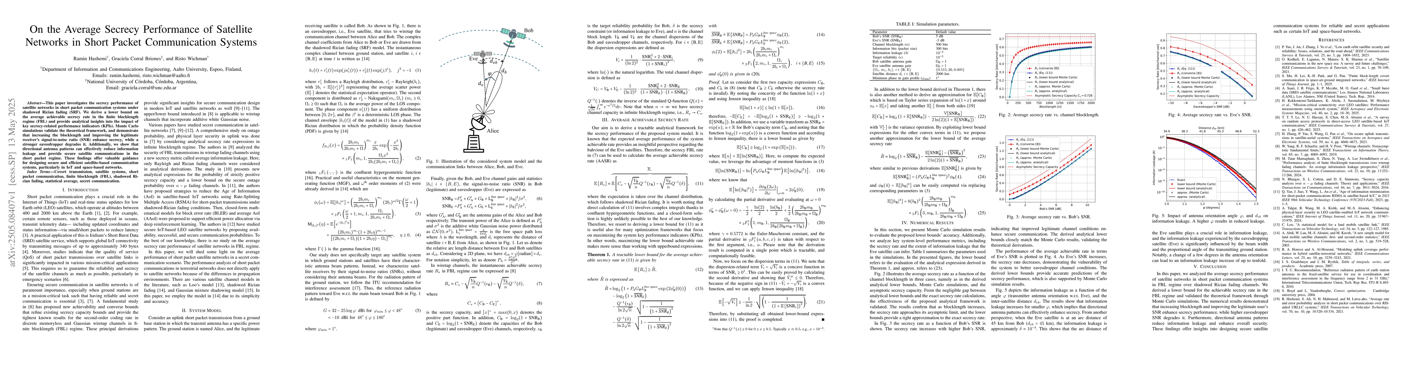 The paper presents a novel analytical framework for assessing secrecy performance in satellite networks under short packet communication and shadowed Rician fading.