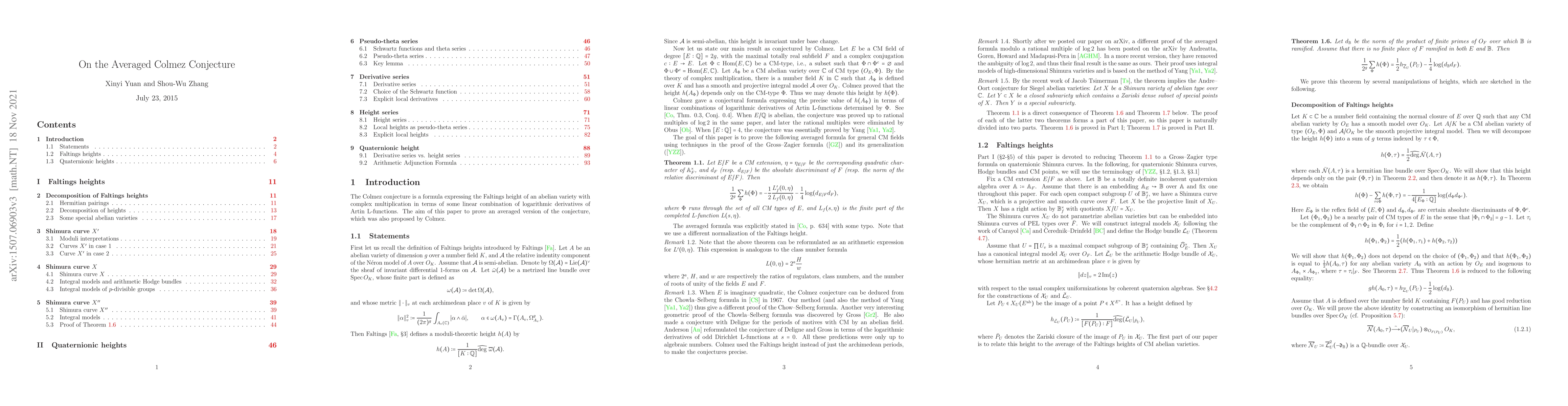 The Colmez conjecture, proposed by Colmez, is a conjecture expressing the Faltings height of a CM abelian variety in terms of some linear combination of logarithmic derivatives of Artin L-functions. The aim of this paper to prove an averaged version of the conjecture.
