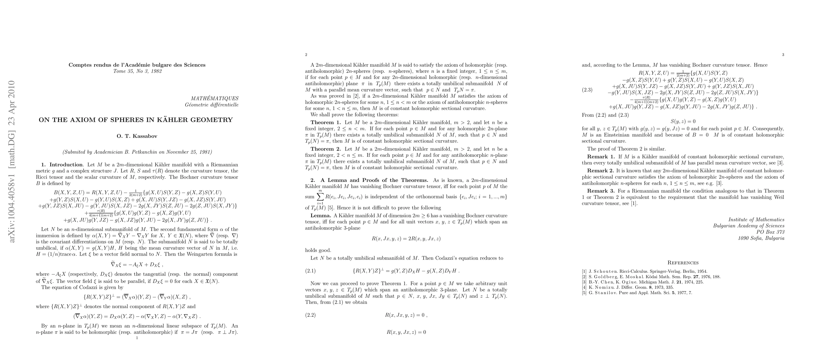 It is known, that if a 2m-dimensional Kahler manifold satisfies the axiom of