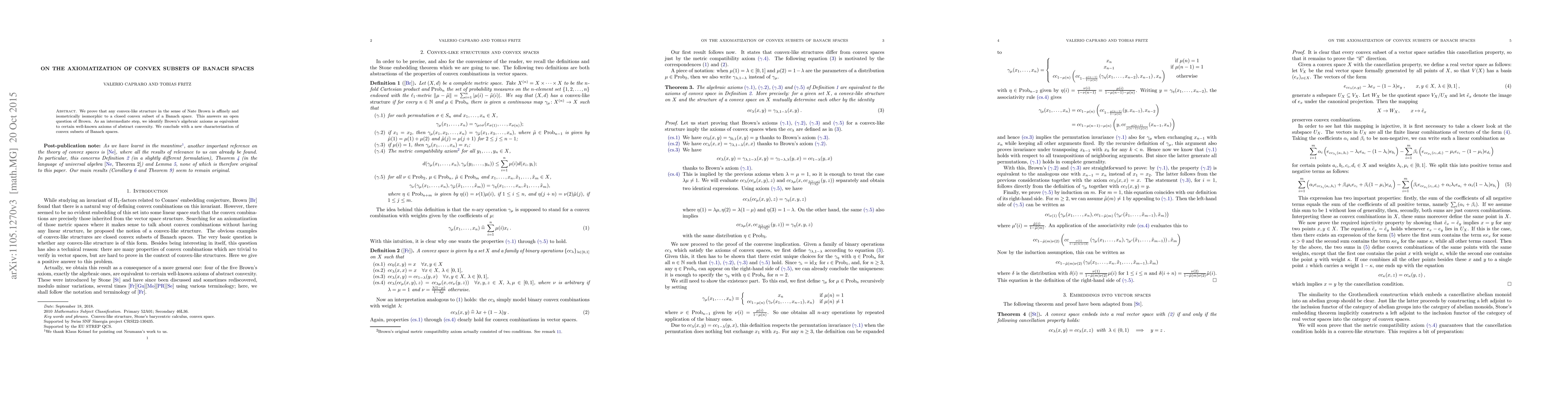This paper proves that any convex-like structure defined by Nate Brown is isomorphic to a closed convex subset in a Banach space, resolving an open question. The study also establishes the equivalence of Brown's algebraic axioms to known axioms of abstract convexity.