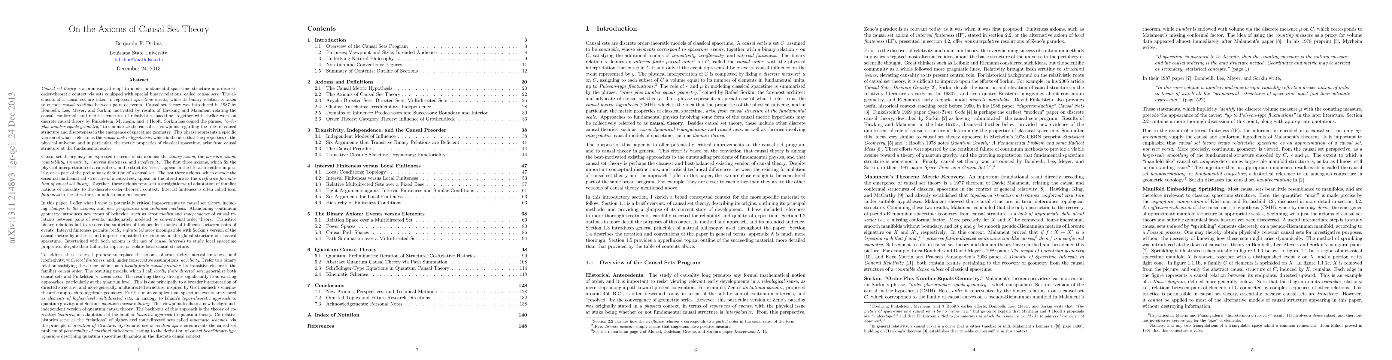This paper offers suggested improvements to the causal sets program in discrete gravity, which treats spacetime geometry as an emergent manifestation of causal structure at the fundamental scale. This viewpoint, which I refer to as the causal metric hypothesis, is summarized by Rafael Sorkin's phrase, "order plus number equals geometry." Proposed improvements include recognition of a generally nontransitive causal relation more fundamental than the causal order, an improved local picture of causal structure, development and use of relation space methods, and a new background-independent version of the histories approach to quantum theory. Besides causal set theory, \`a la Bombelli, Lee, Meyer, and Sorkin, this effort draws on Isham's topos-theoretic framework for physics, Sorkin's quantum measure theory, Finkelstein's causal nets, and Grothendieck's structural principles. This approach circumvents undesirable structural features in causal set theory, such as the permeability of maximal antichains, studied by Major, Rideout, and Surya, and the configuration space pathology arising from the asymptotic enumeration of Kleitman and Rothschild. The paper culminates in the theory of co-relative histories and kinematic schemes, combining the causal metric hypothesis, the histories approach to quantum theory, and Grothendieck's relative viewpoint. This leads to the derivation of causal Schr\"odinger-type equations as dynamical laws for discrete quantum spacetime.