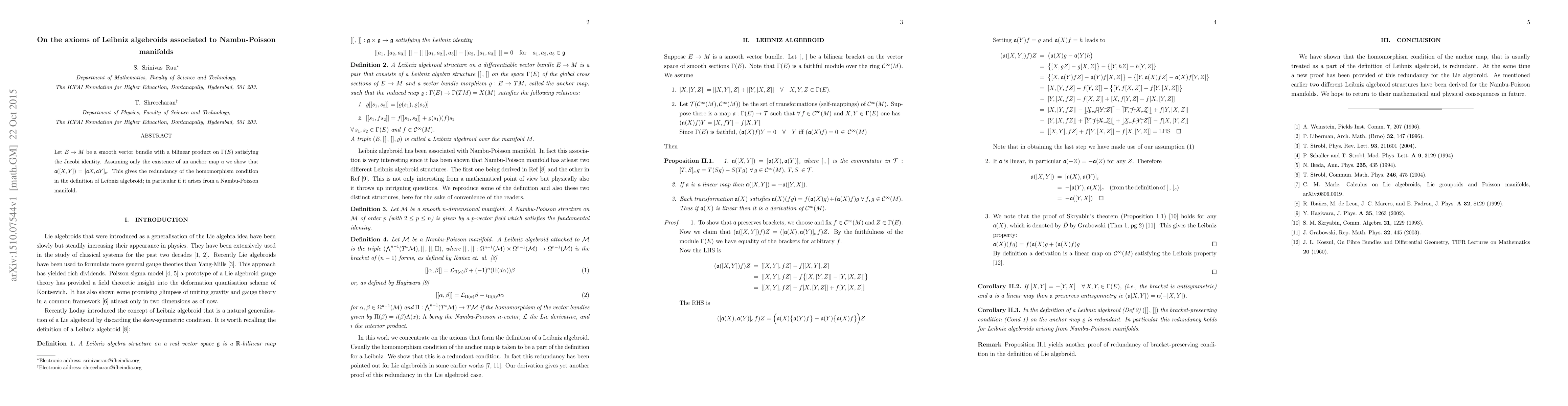 Let $E \rightarrow M$ be a smooth vector bundle with a bilinear product on $\Gamma(E)$ satisfying the Jacobi identity. Assuming only the existence of an anchor map $\mathfrak{a}$ we show that $\mathfrak{a}([X,Y]) = [\mathfrak{a}X,\mathfrak{a}Y]_c$. This gives the redundancy of the homomorphism condition in the definition of Leibniz algebroid; in particular if it arises from a Nambu-Poisson manifold.