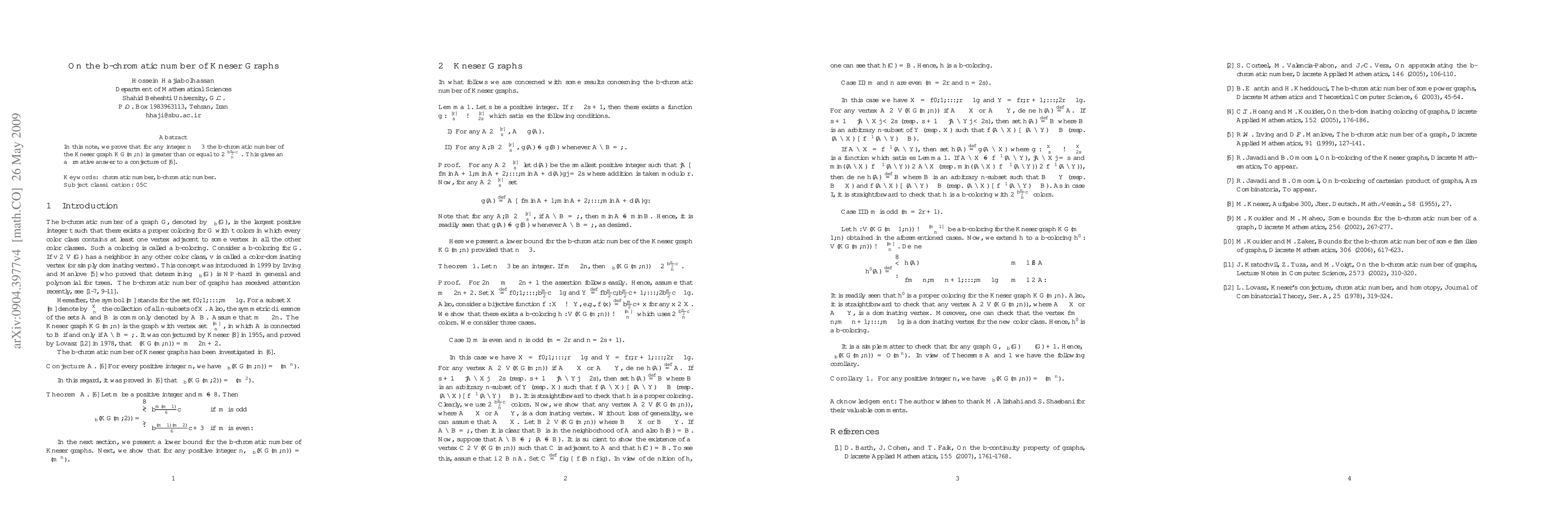 Summary: The paper proves that the b-chromatic number for Kneser graphs $KG(m,n)$ is at least $2{\lfloor {m\over 2} \rfloor \choose n}$ for any integer $n\geq 3$, confirming a conjecture and providing a significant result in graph theory.