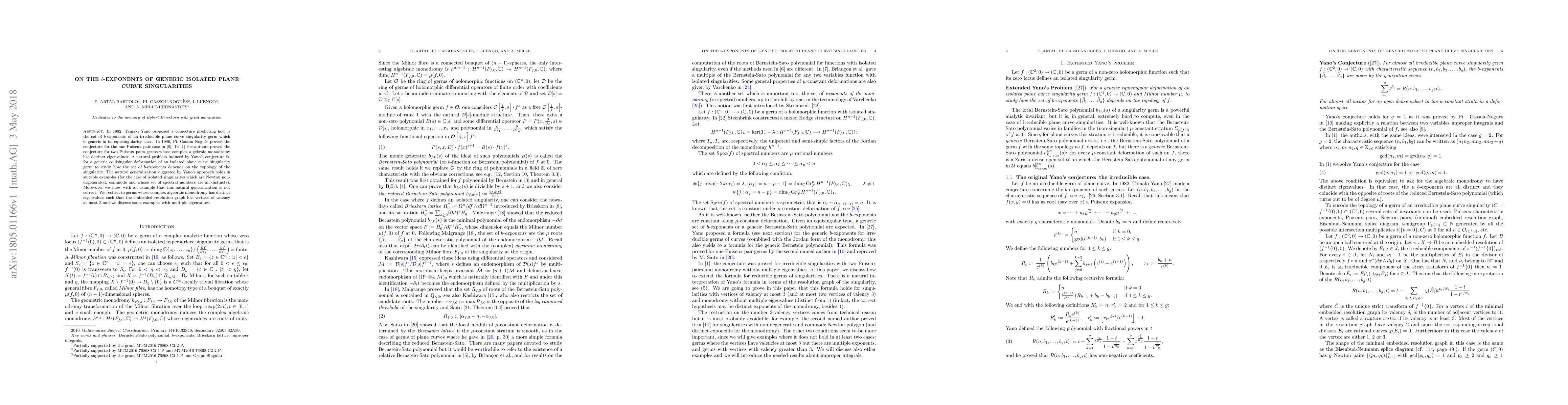 In 1982, Tamaki Yano proposed a conjecture predicting how is the set of $b$-exponents of an irreducible plane curve singularity germ which is generic in its equisingularity class. In 1986, Pi.~Cassou-Nogu\`es proved the conjecture for the one Puiseux pair case. In a previous work the authors proved the conjecture for two Puiseux pairs germs whose complex algebraic monodromy has distinct eigenvalues. A natural problem induced by Yano's conjecture is, for a generic equisingular deformation of an isolated plane curve singularity germ to study how the set of $b$-exponents depends on the topology of the singularity. The natural generalization suggested by Yano's approach holds in suitable examples (for the case of isolated singularites which are Newton non-degenerated, commode and whose set of spectral numbers are all distincts). Morevover we show with an example that this natural generalization is not correct. We restrict to germs whose complex algebraic monodromy has distinct eigenvalues such that the embedded resolution graph has vertices of valency at most 3 and we discuss some examples with multiple eigenvalues.