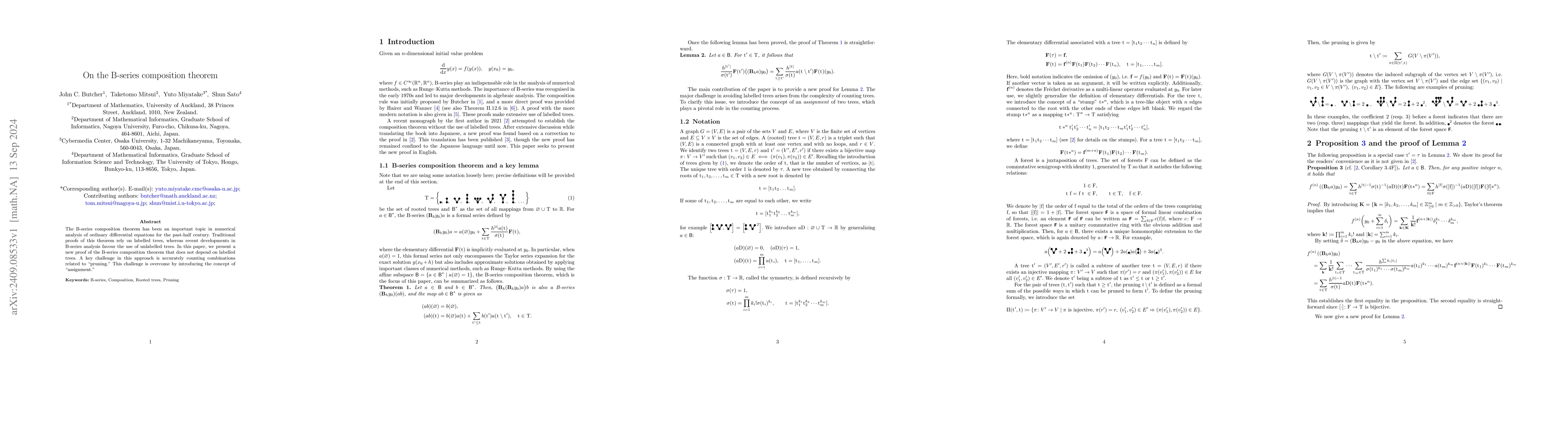 This paper introduces a novel proof for the B-series composition theorem in numerical analysis, moving away from labelled trees to unlabelled trees. The challenge of accurately counting combinations is addressed through the new concept of "assignment."