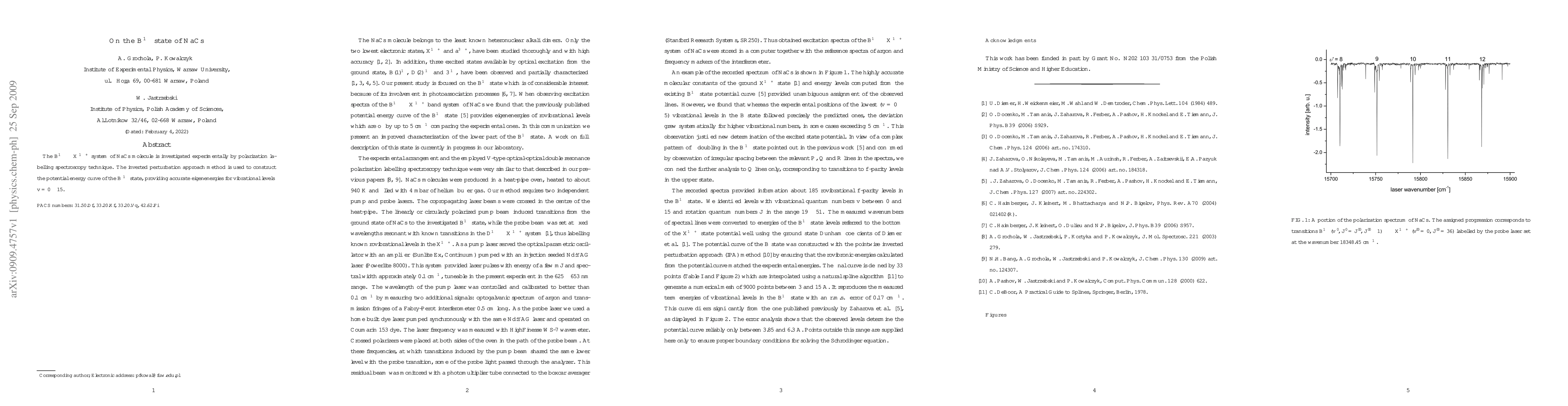 This study investigates the B^1Π <- X^1Σ^+ transition in the NaCs molecule using polarization labeling spectroscopy, and employs the inverted perturbation approach to construct the potential energy curve for the B^1Π state, yielding precise eigenenergies for vibrational levels v = 0-15.