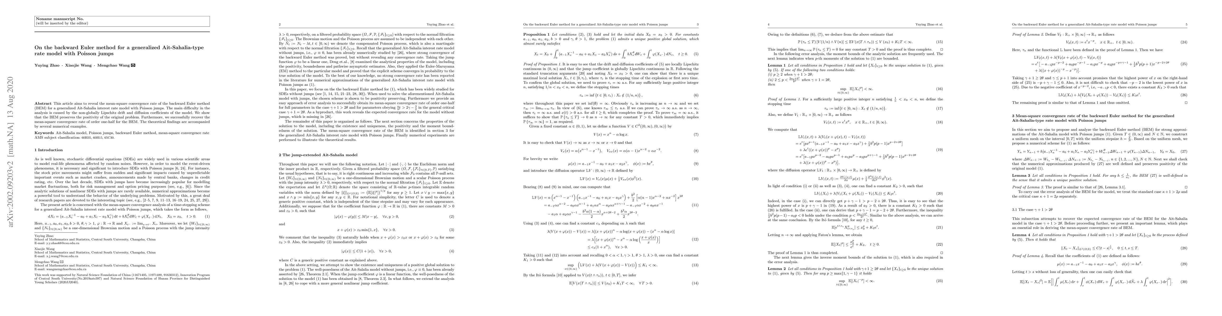 The backward Euler method is shown to preserve positivity in a generalized Ait-Sahalia interest rate model with Poisson jumps, and its mean-square convergence rate is found to be of order one-half.