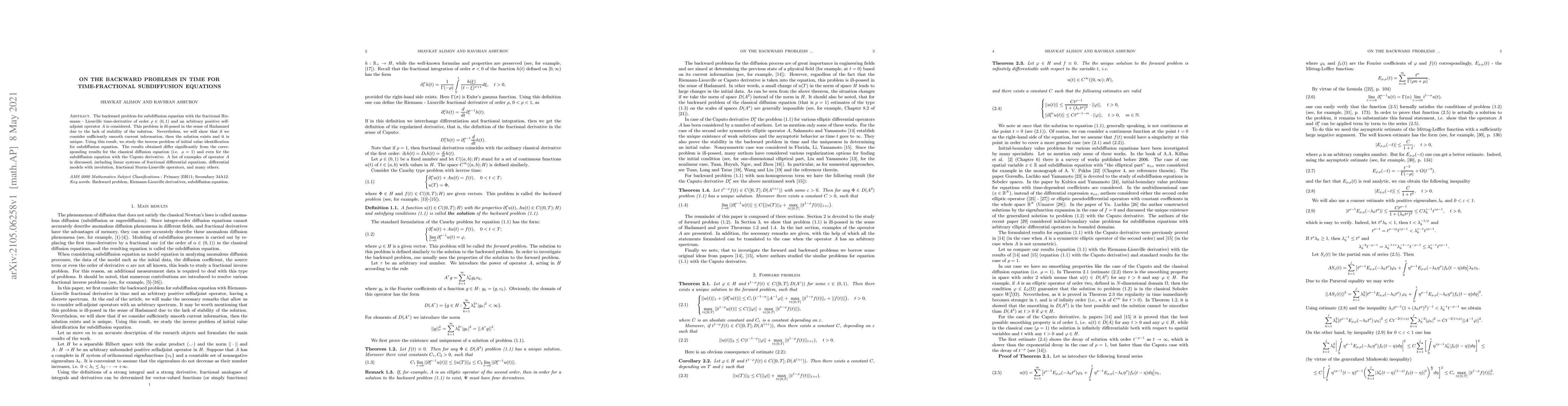 Researchers studied the backward problem in time for subdiffusion equations with fractional derivatives, finding that sufficient smooth current information can yield unique solutions, differing from classical diffusion equation results.