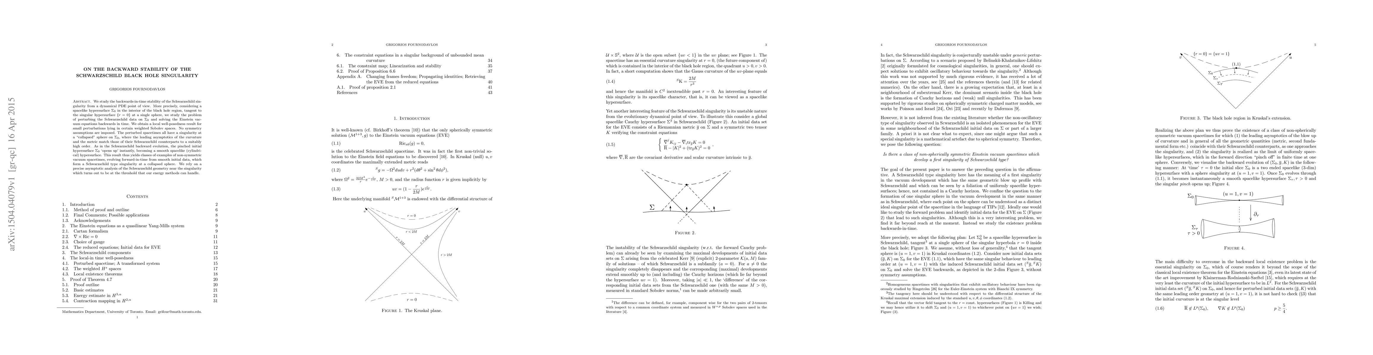 This paper investigates the backward-in-time stability of the Schwarzschild singularity by perturbing initial data and solving the Einstein vacuum equations backwards. It finds local well-posedness for small perturbations, showing that perturbed spacetimes form a Schwarzschild-type singularity, with initial hypersurfaces becoming smooth and cylindrical.