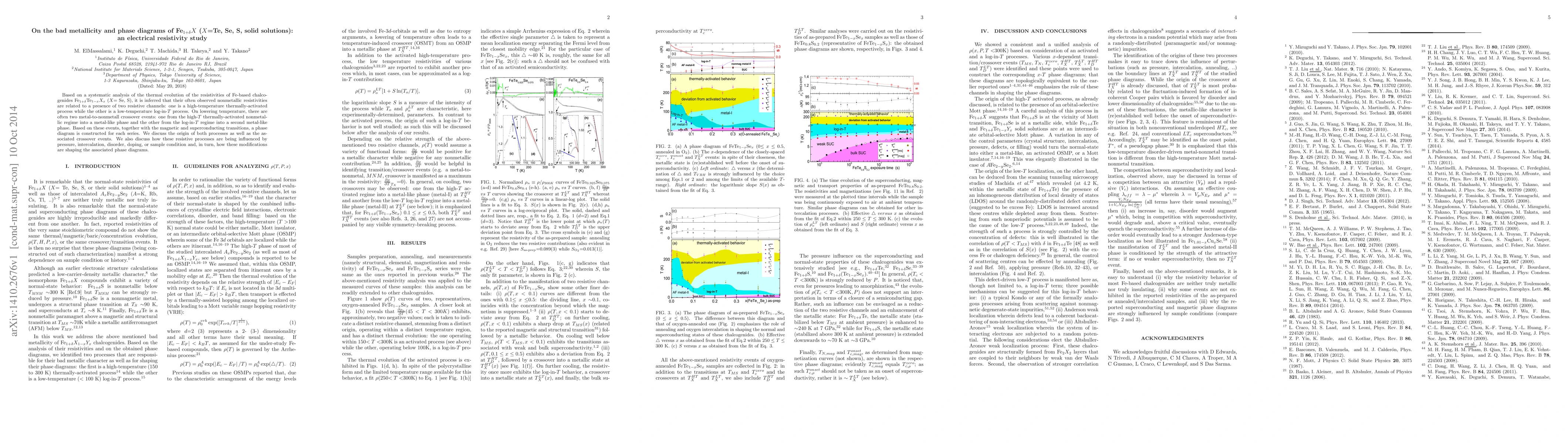 Based on a systematic analysis of the thermal evolution of the resistivities of Fe-based chalcogenides Fe$_{1+\delta }$Te$_{1-x}X_{x}$ ($X$= Se, S), it is inferred that their often observed nonmetallic resistivities are related to a presence of two resistive channels: one is a high-temperature thermally-activated process while the other is a low-temperature log-in-$T$ process. On lowering temperature, there are often two metal-to-nonmetall crossover events: one from the high-$T$ thermally-activated nonmetallic regime into a metal-like phase and the other from the log-in-$T$ regime into a second metal-like phase. Based on these events, together with the magnetic and superconducting transitions, a phase diagram is constructed for each series. We discuss the origin of both processes as well as the associated crossover events. We also discuss how these resistive processes are being influenced by pressure, intercalation, disorder, doping, or sample condition and, in turn, how these modifications are shaping the associated phase diagrams.