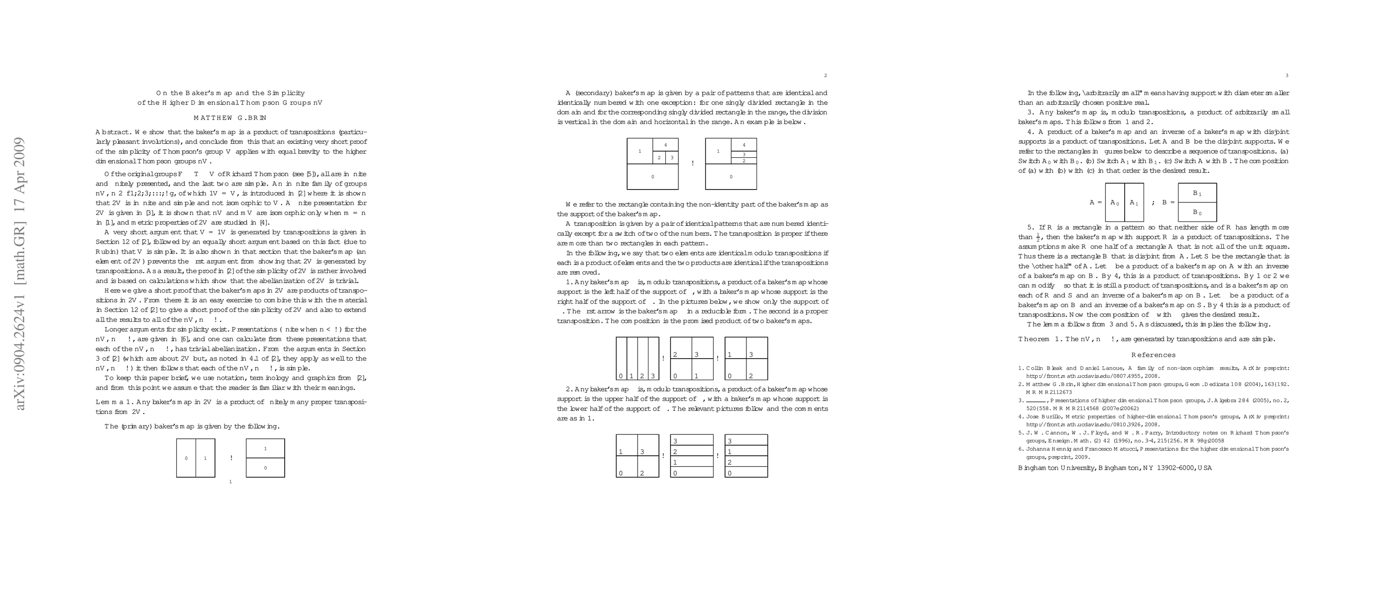 The paper demonstrates that the baker's map can be decomposed into a product of transpositions, thereby allowing a succinct proof of the simplicity of Thompson's group V to be extended equally concisely to higher-dimensional Thompson groups nV.