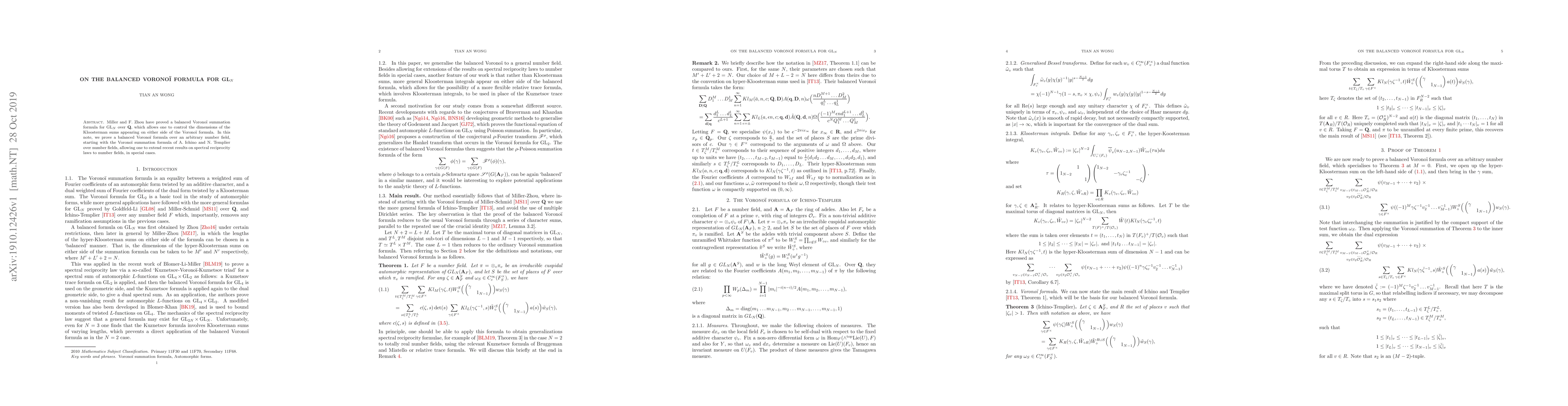 This paper extends the balanced Voronoi summation formula for GL$_N$ to arbitrary number fields, building on the work of Miller, Zhou, Ichino, and Templier, and enables the application of spectral reciprocity laws in these broader contexts.