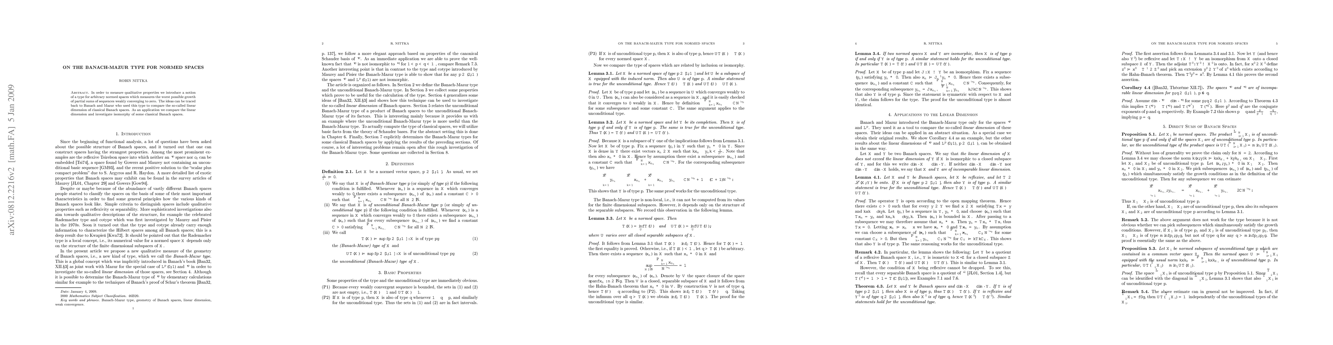 In order to measure qualitative properties we introduce a notion of a type for arbitrary normed spaces which measures the worst possible growth of partial sums of sequences weakly converging to zero. The ideas can be traced back to Banach and Mazur who used this type to compare the so-called linear dimension of classical Banach spaces. As an application we compare the linear dimension and investigate isomorphy of some classical Banach spaces.