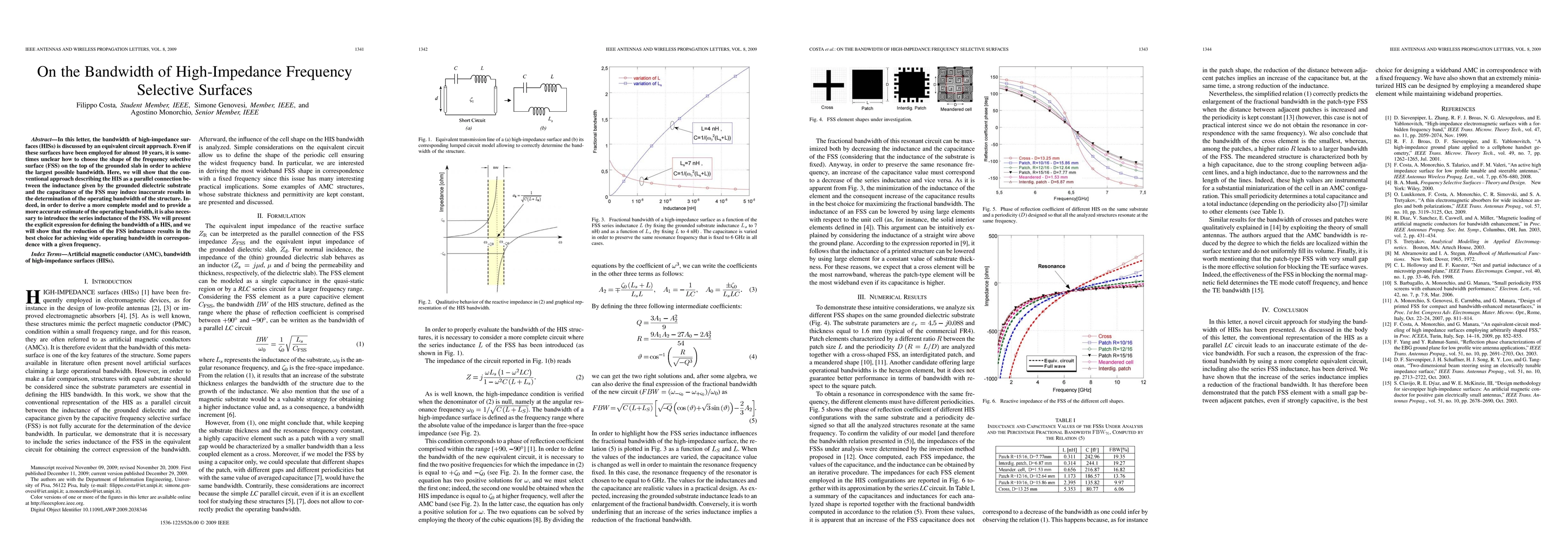Researchers provide a new equivalent circuit approach to calculate the bandwidth of high-impedance frequency selective surfaces, revealing that reducing FSS inductance leads to wider operating bandwidths.